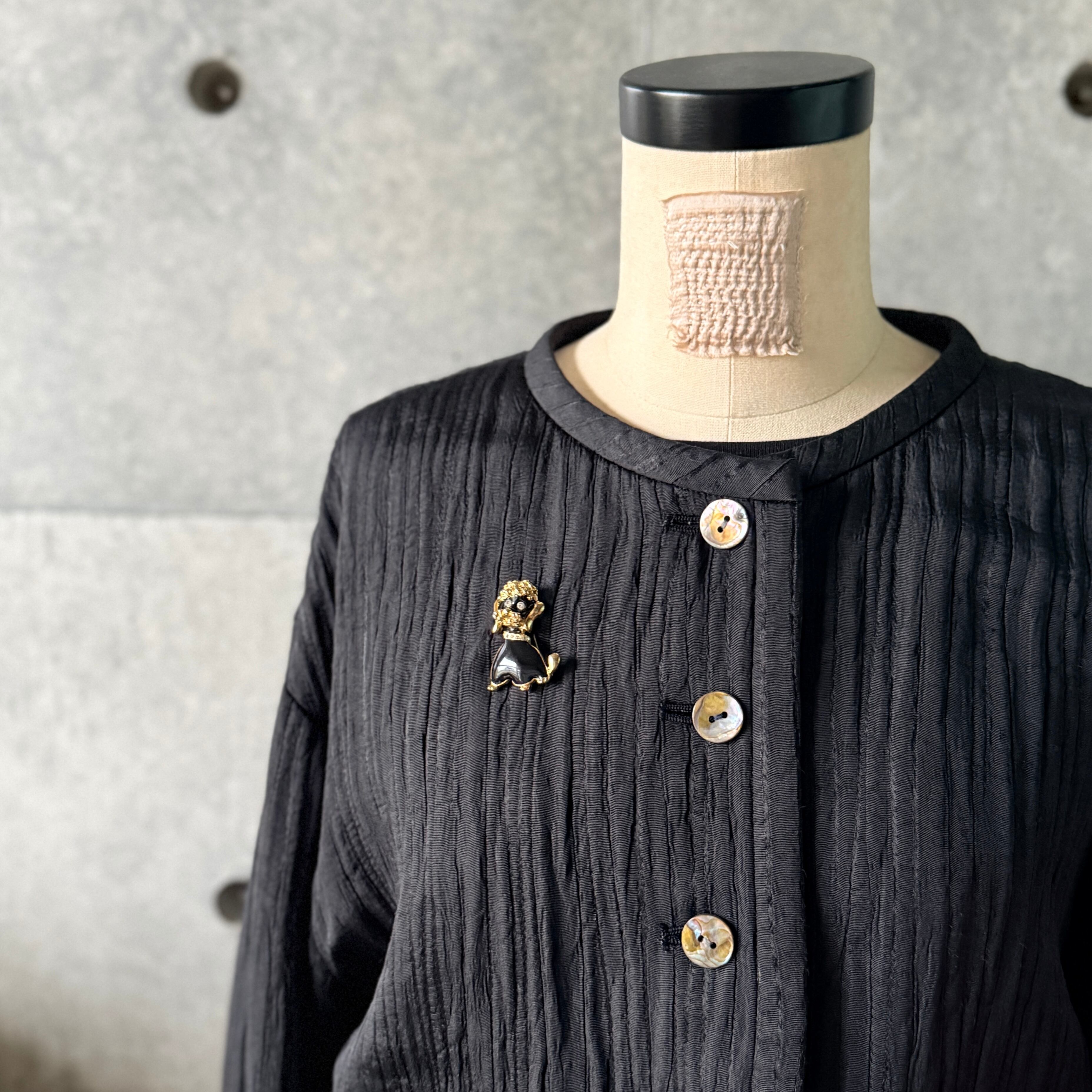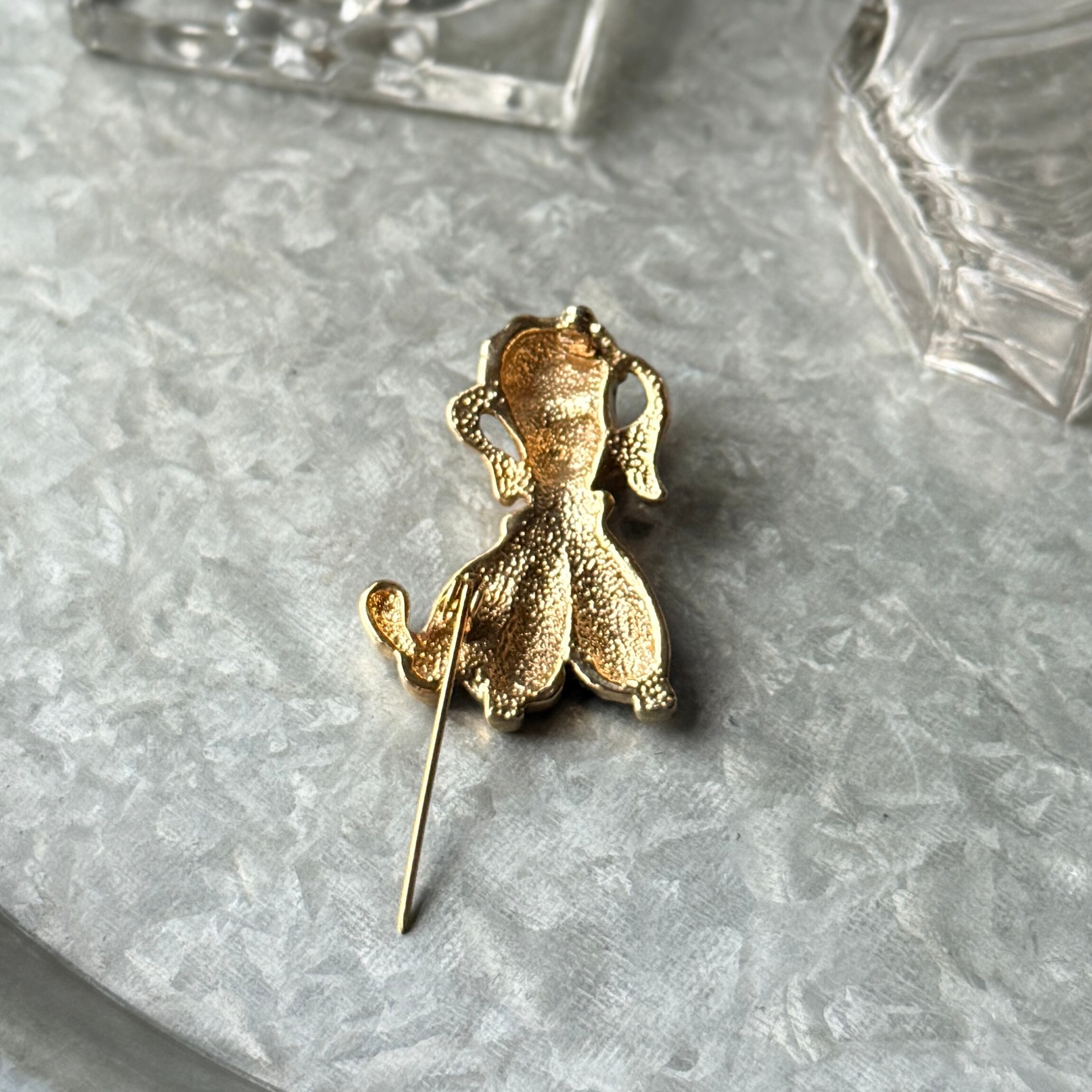 ゴールドトーンをベースにブラックエナメルペイントされたプードルブローチ。