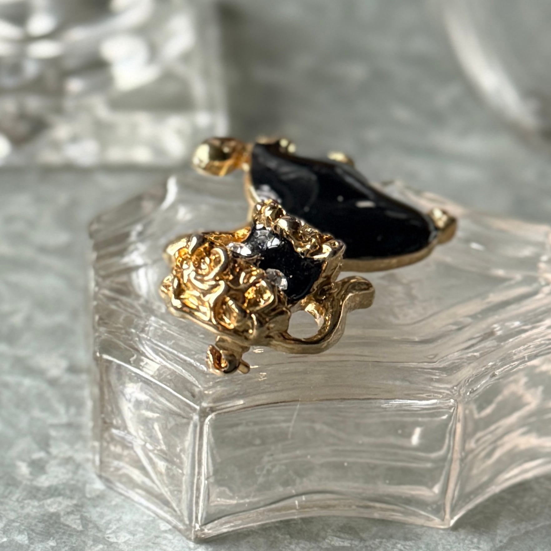 ブラックシックなカラーと、愛らしさたっぷりの佇まいで大人の遊び心をくすぐるブローチ。