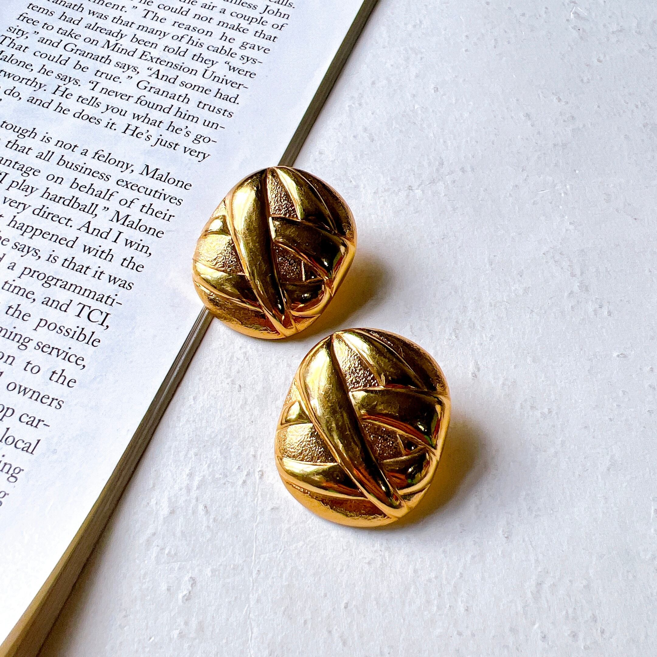 ゴールデンカラーの大きめのサイズは存在感たっぷりです。1990年代の華やかな時代のファッションを彷彿とさせ、リッチでラグジュアリーな個性を放ちます。