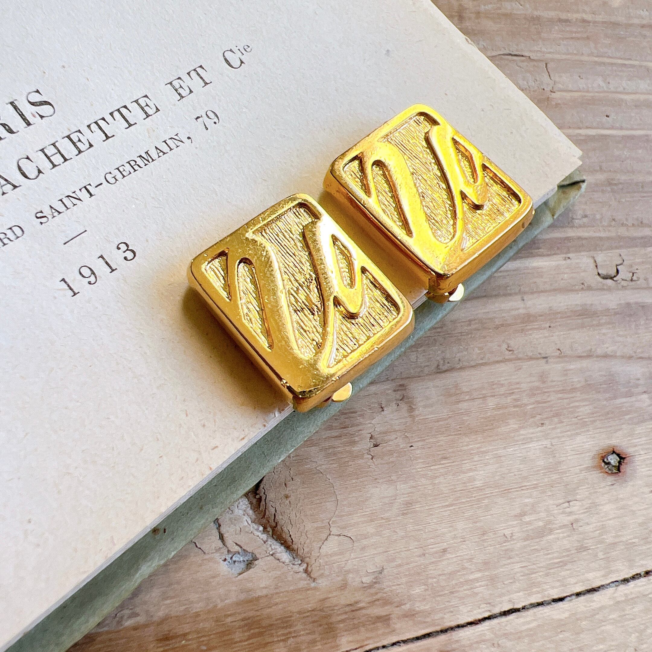 Y669-ヴィンテージイヤリング・ CHARLS REVSON ULTIMA Ⅱ ・Gold tone rectangular plate embossed design clip earrings | eslup_boutique