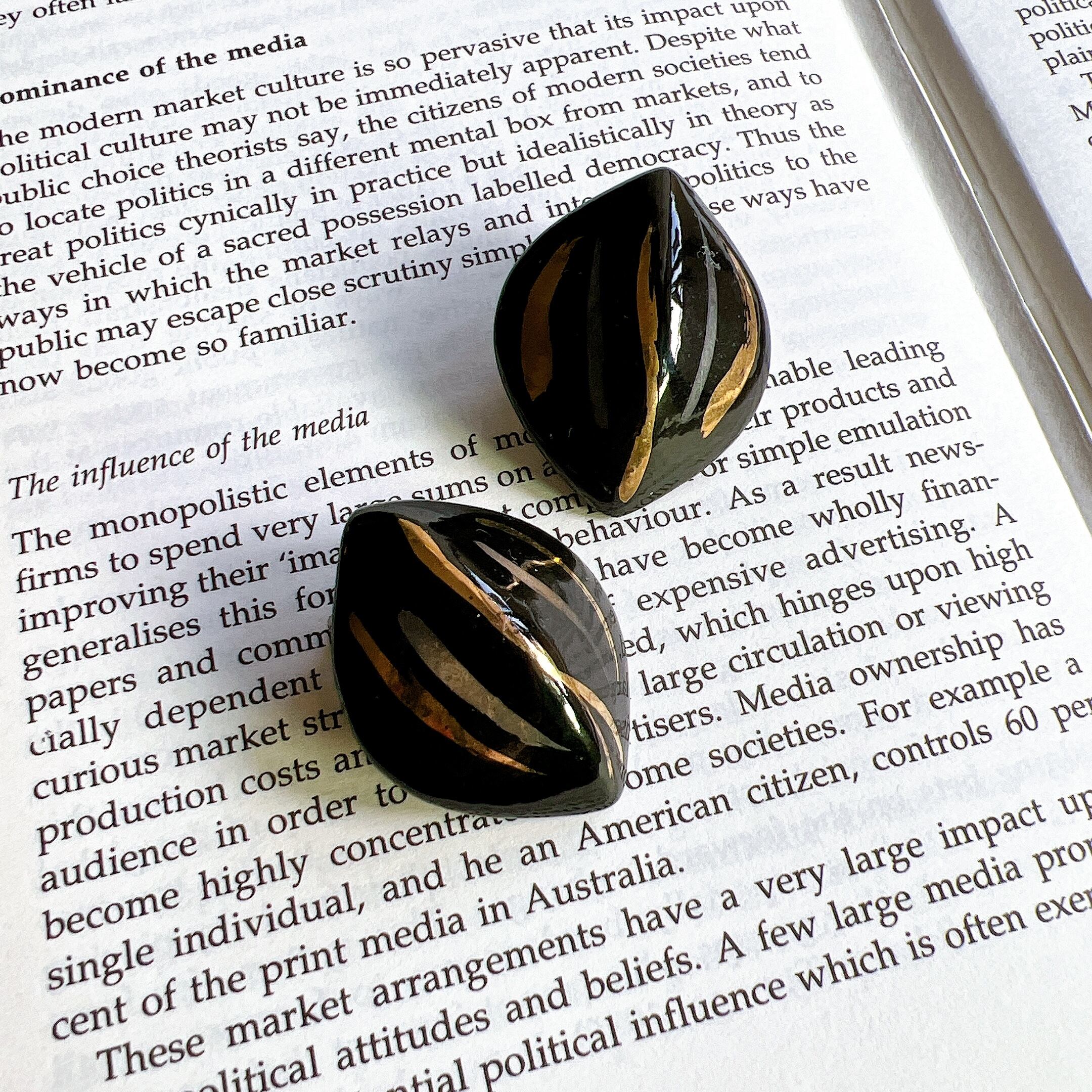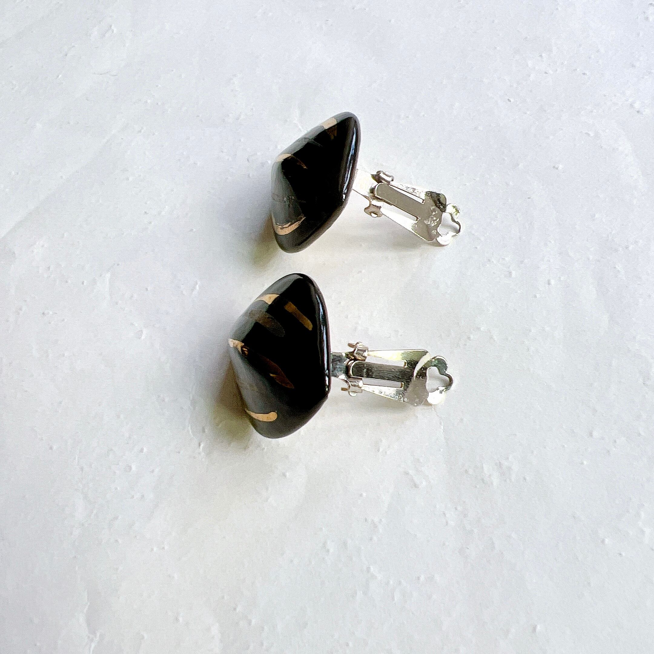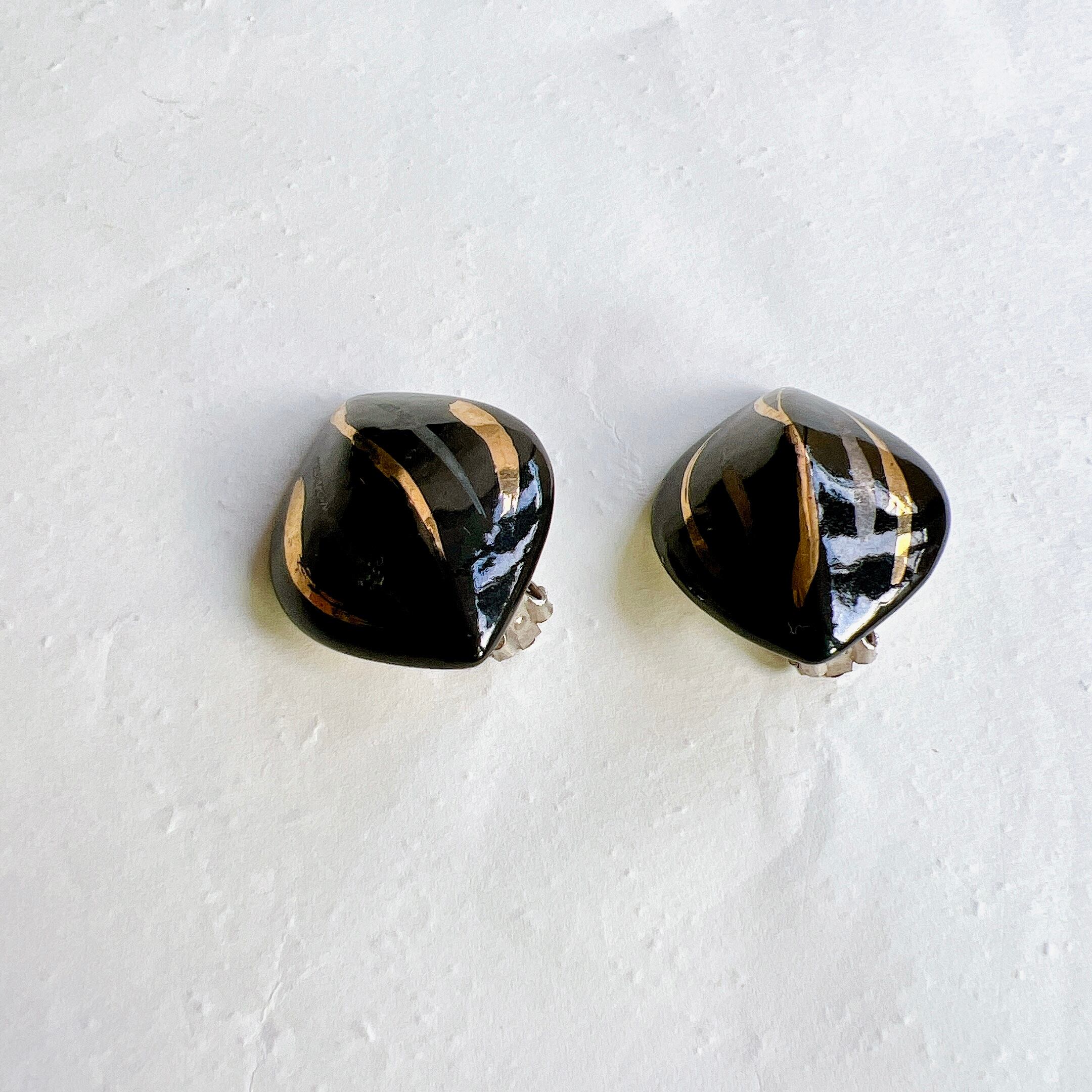 Y706-ヴィンテージイヤリング・USA直輸入 Black enamel paint gold line large three-dimensional clip earrings | eslup_boutique