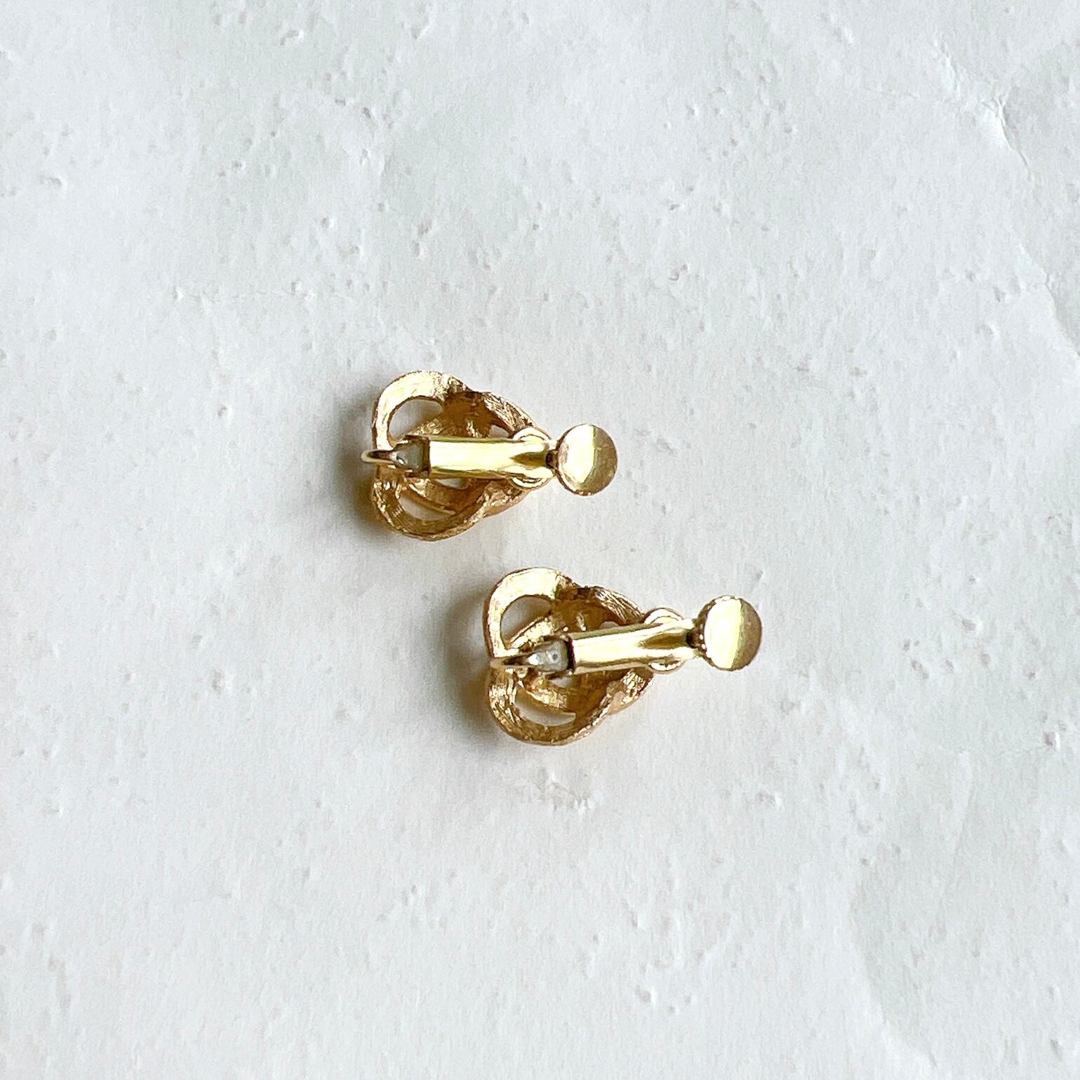 緩めに結いだ、丸みのあるシルエットのデザインイヤリング。マットと艶の2種類のテクスチャーのゴールドトーンがさりげないです。