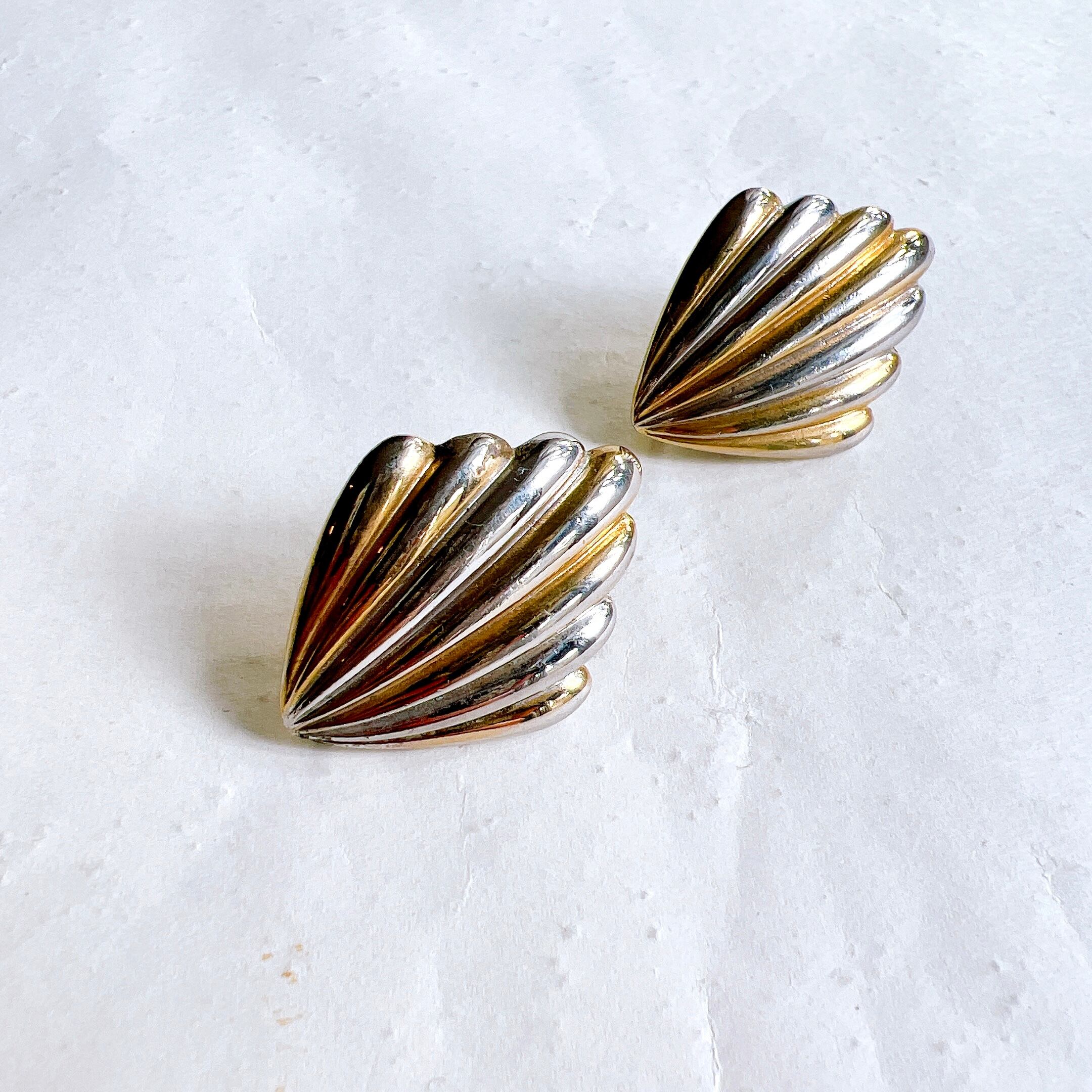 上記にもありますが、本体表面のメッキがグラデーションのように薄くなっています。ストライプ柄にも見え、デザイン性を感じる風合いとなっています。機能面には問題なく状態の良いヴィンテージイヤリングです。