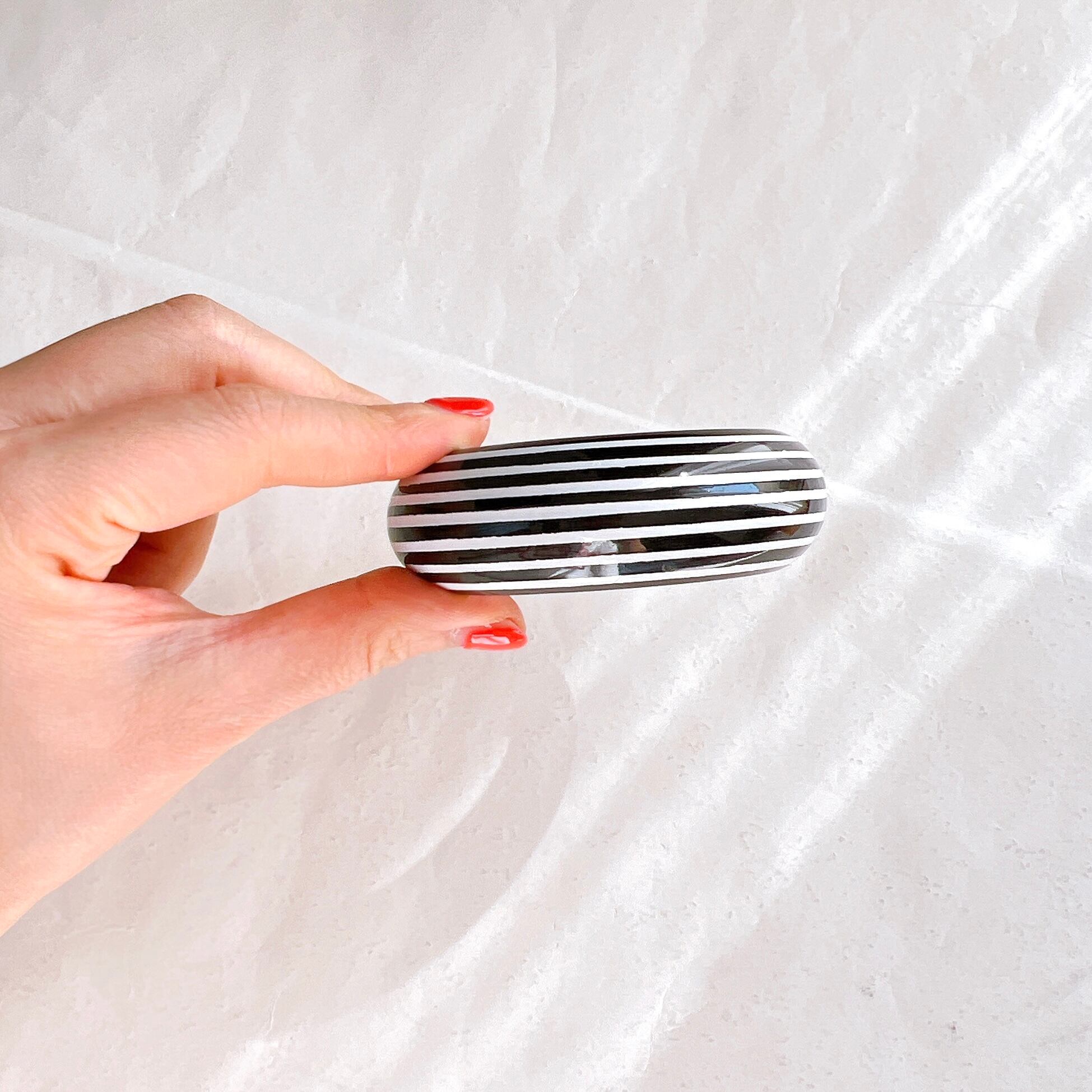 ネイビーとホワイトのボーダーのバングル。