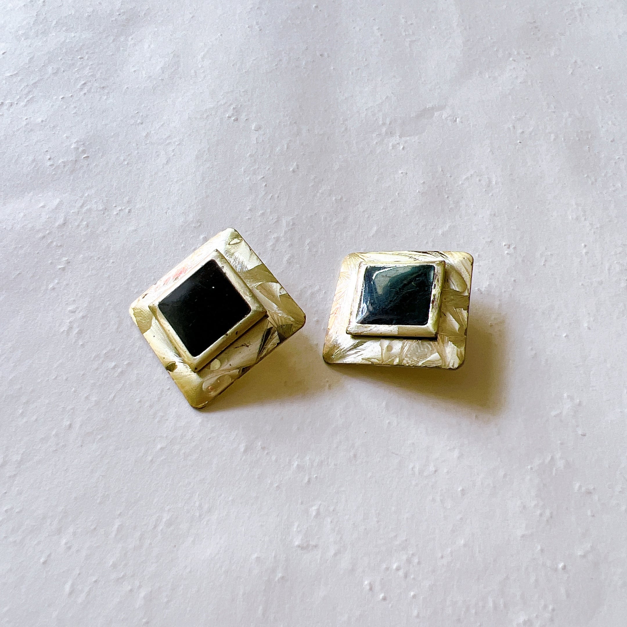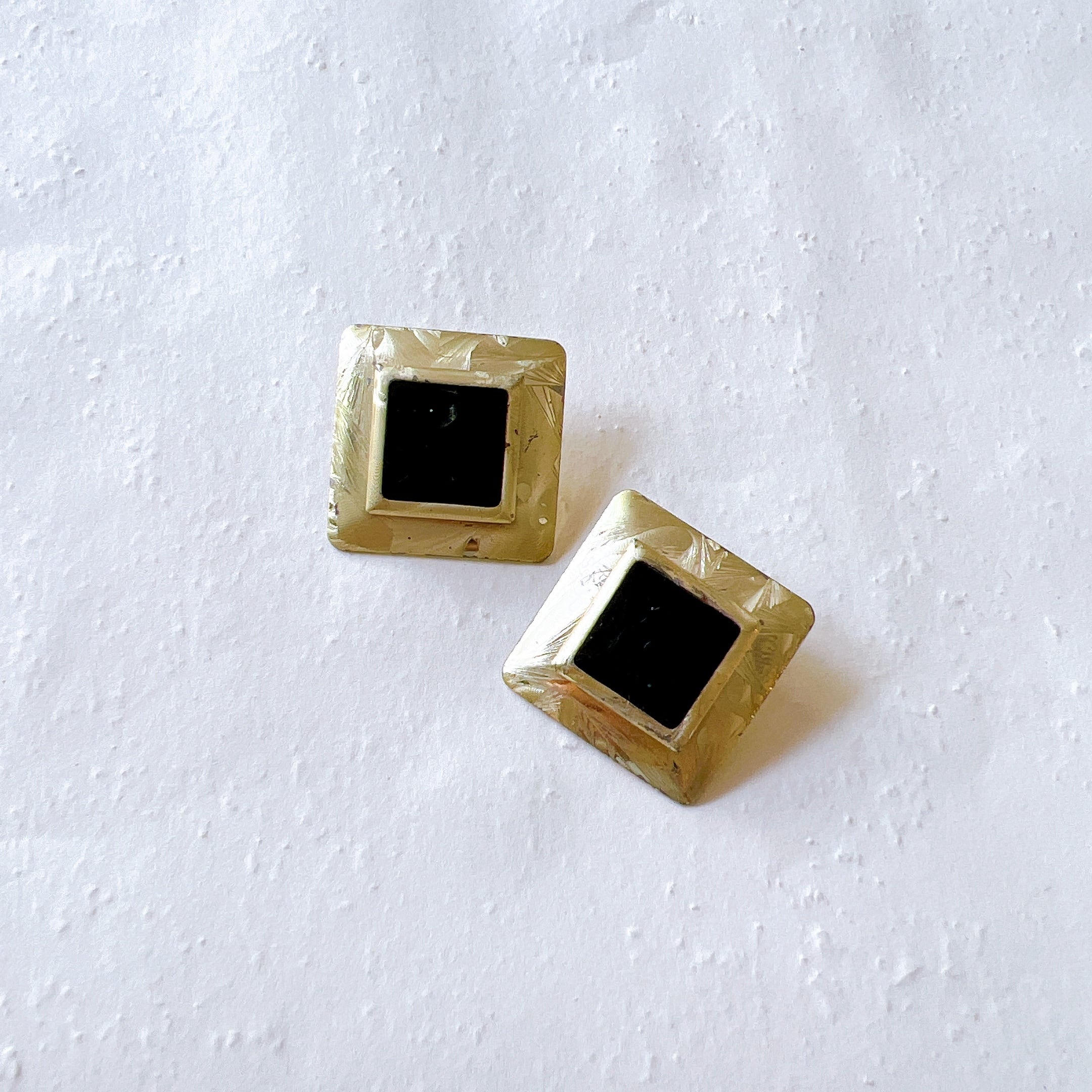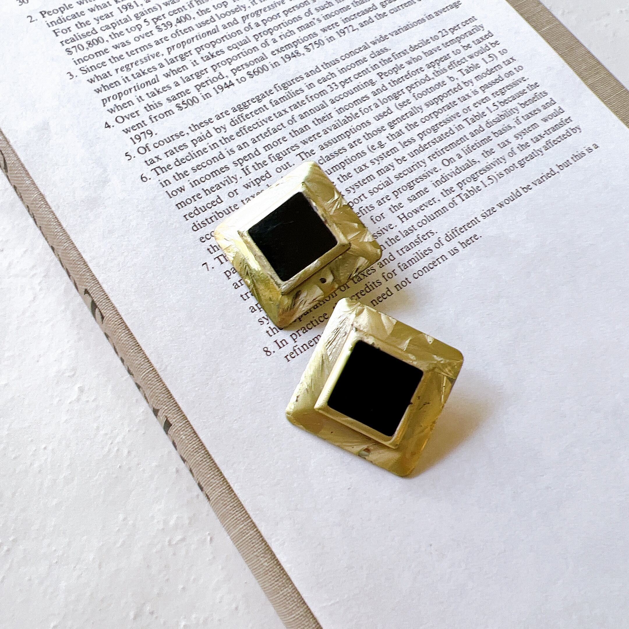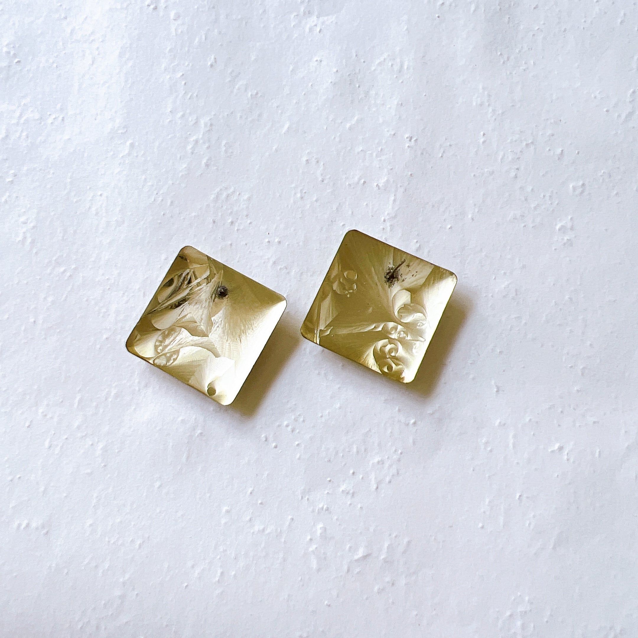 ゴールドトーンのスクエアプレートピアス。