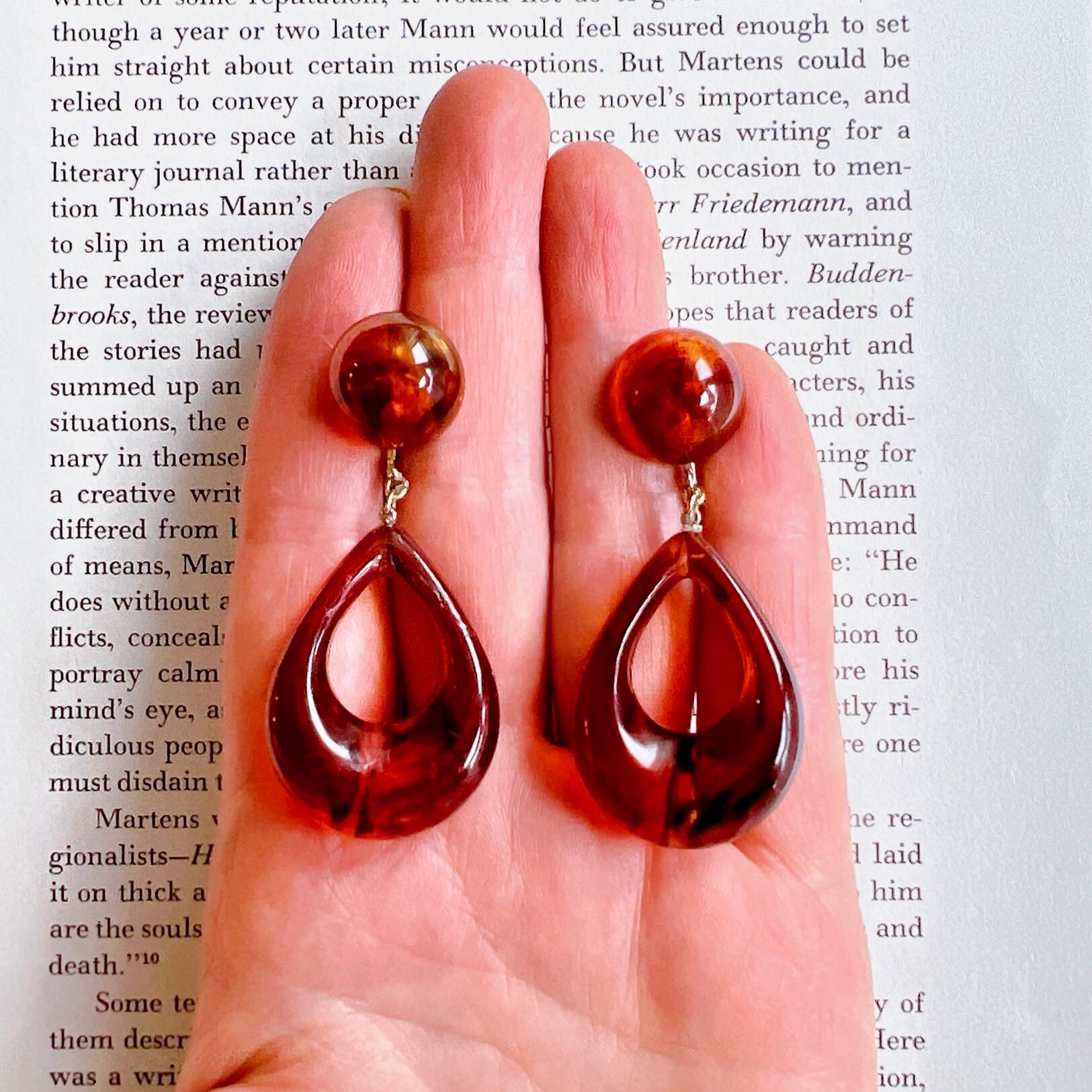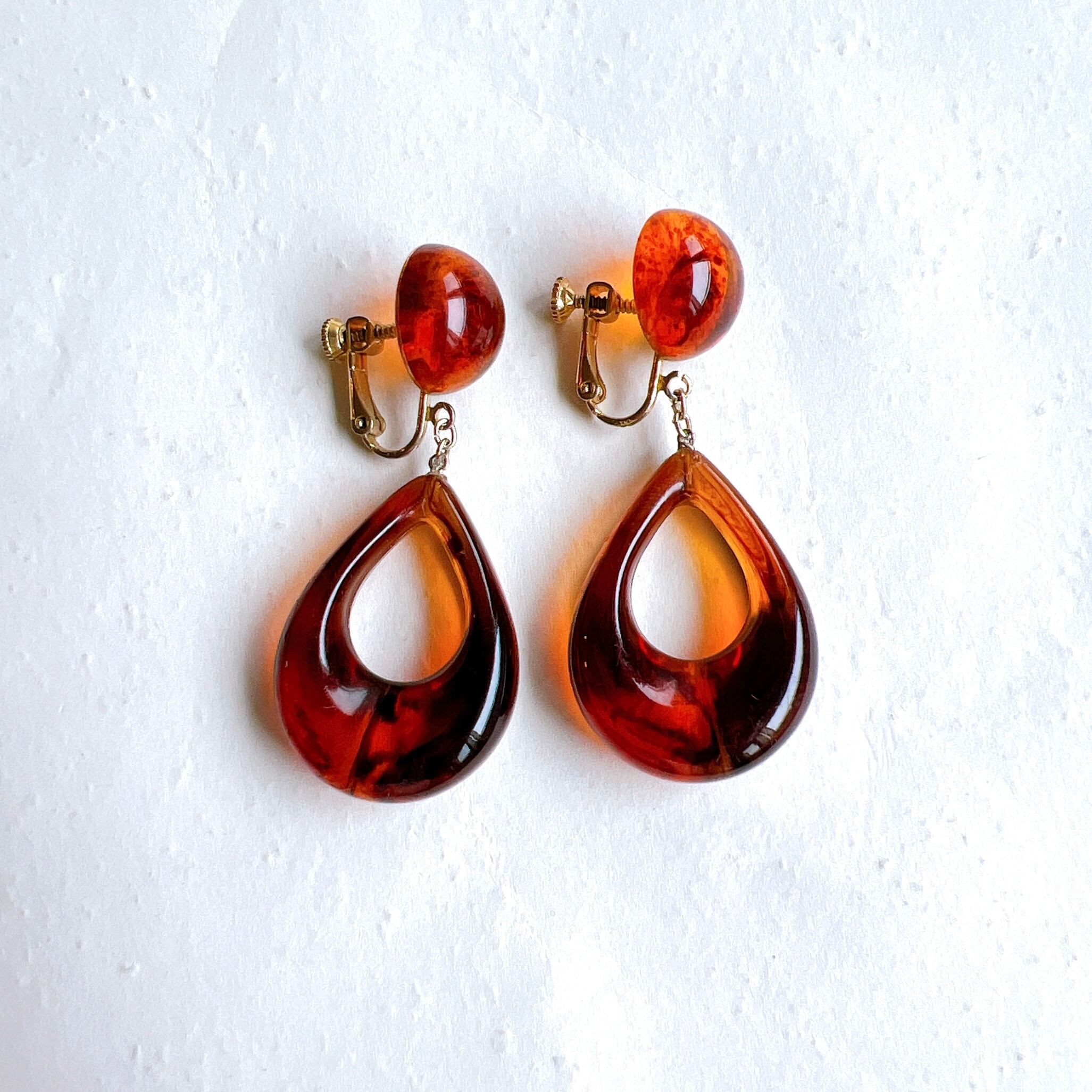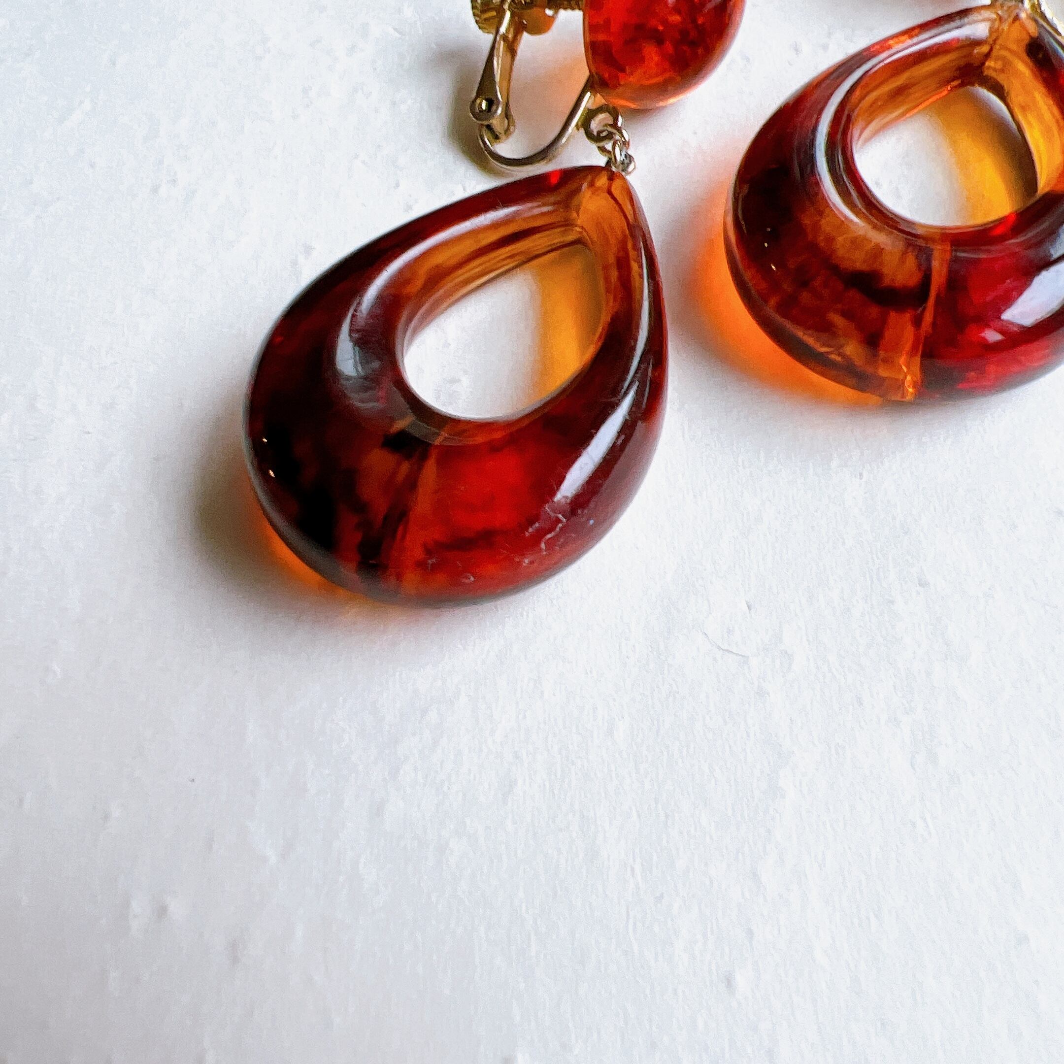 アクリルべっ甲のドロップ型フープイヤリング。