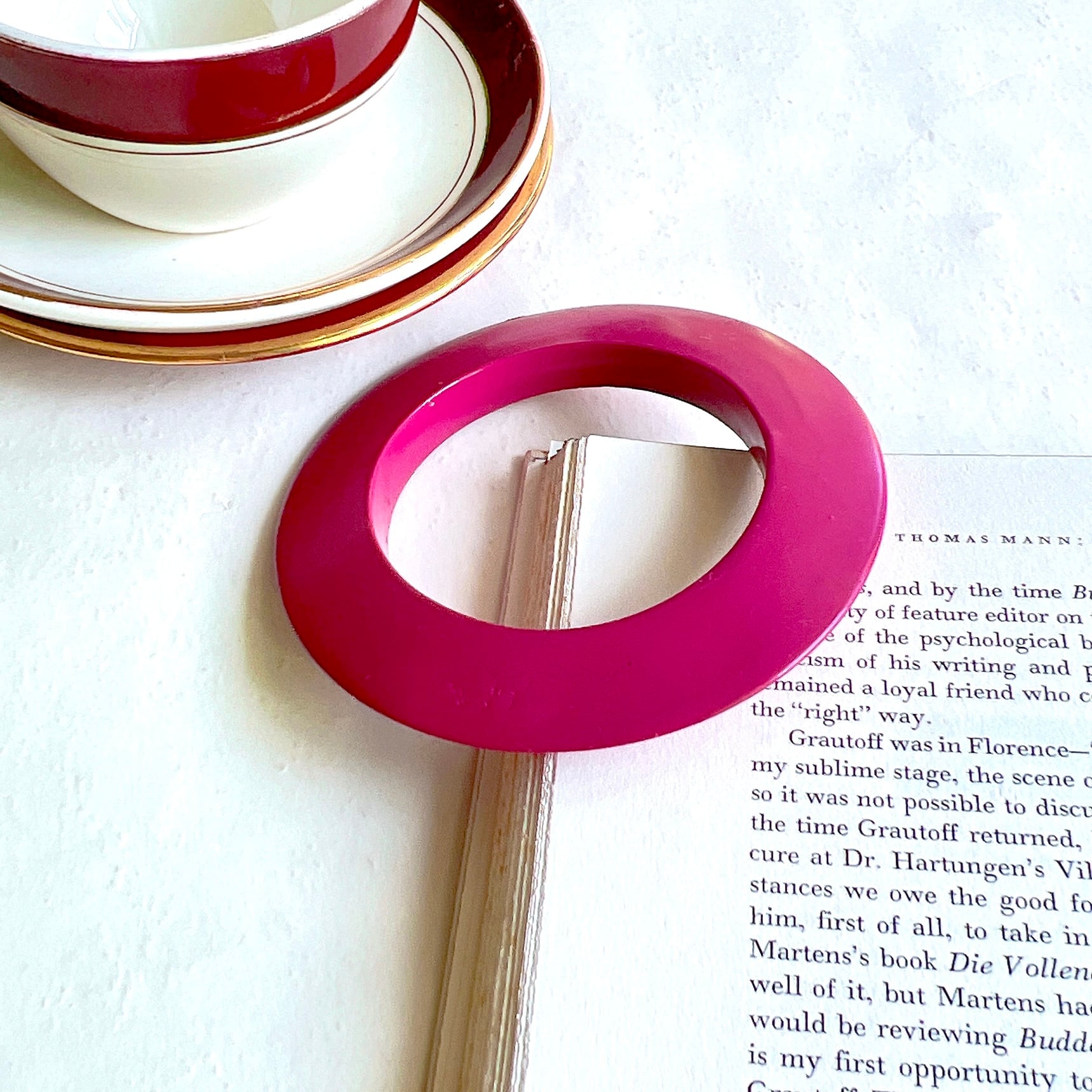 青みのある濃いピンクと、薄めの大ぶりなディスクプレートは、1980年代の華やかなファッションを彷彿とさせるインパクトを放ちます。