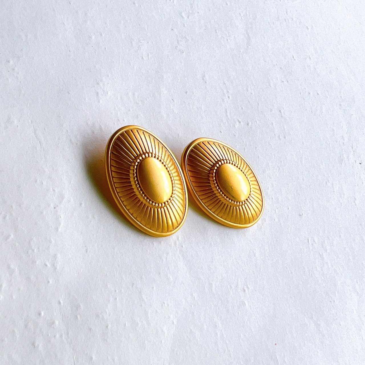 YA16-【 AVON 】エイボン・ヴィンテージイヤリング 1980s Golden color matte texture vertical oval clip earrings | eslup_boutique