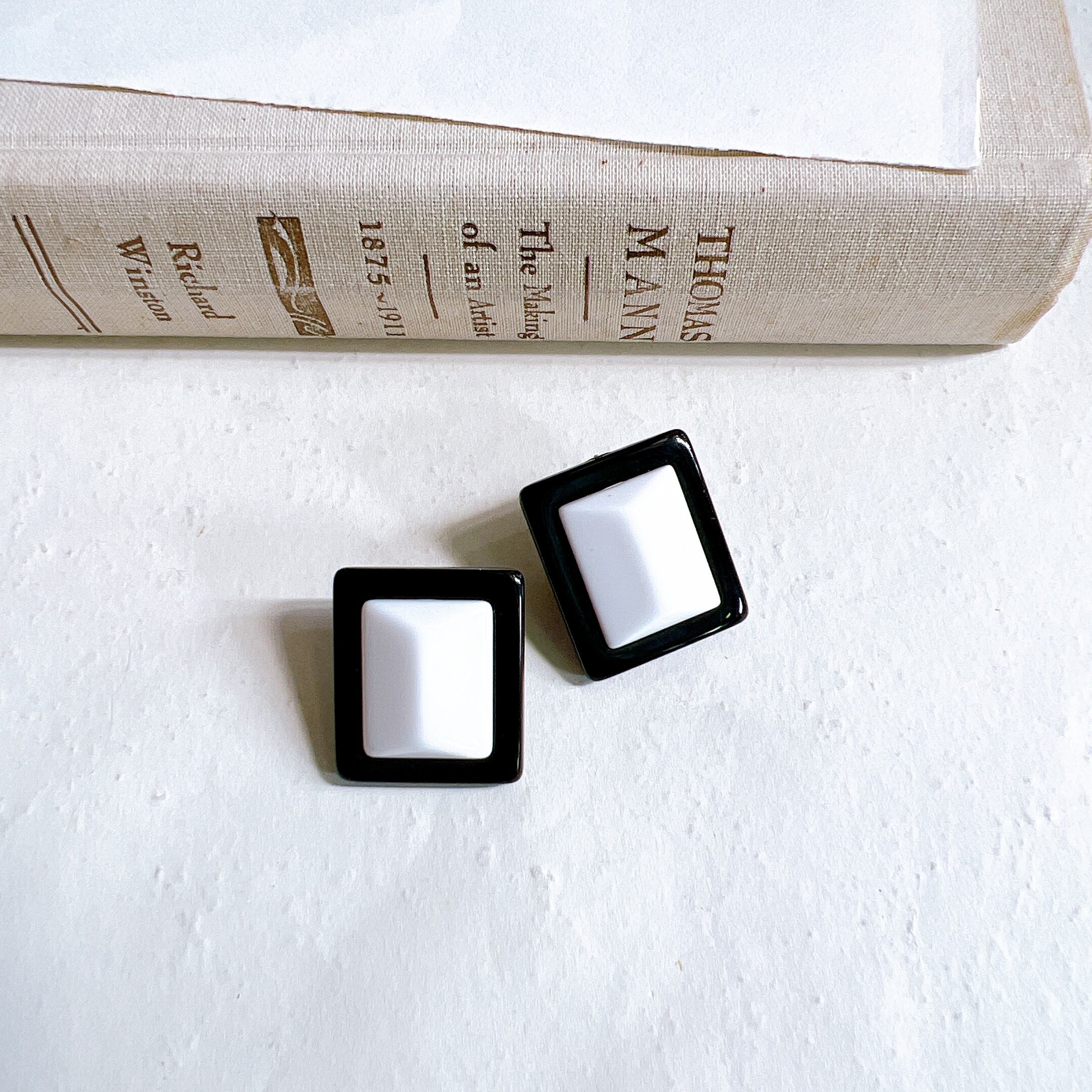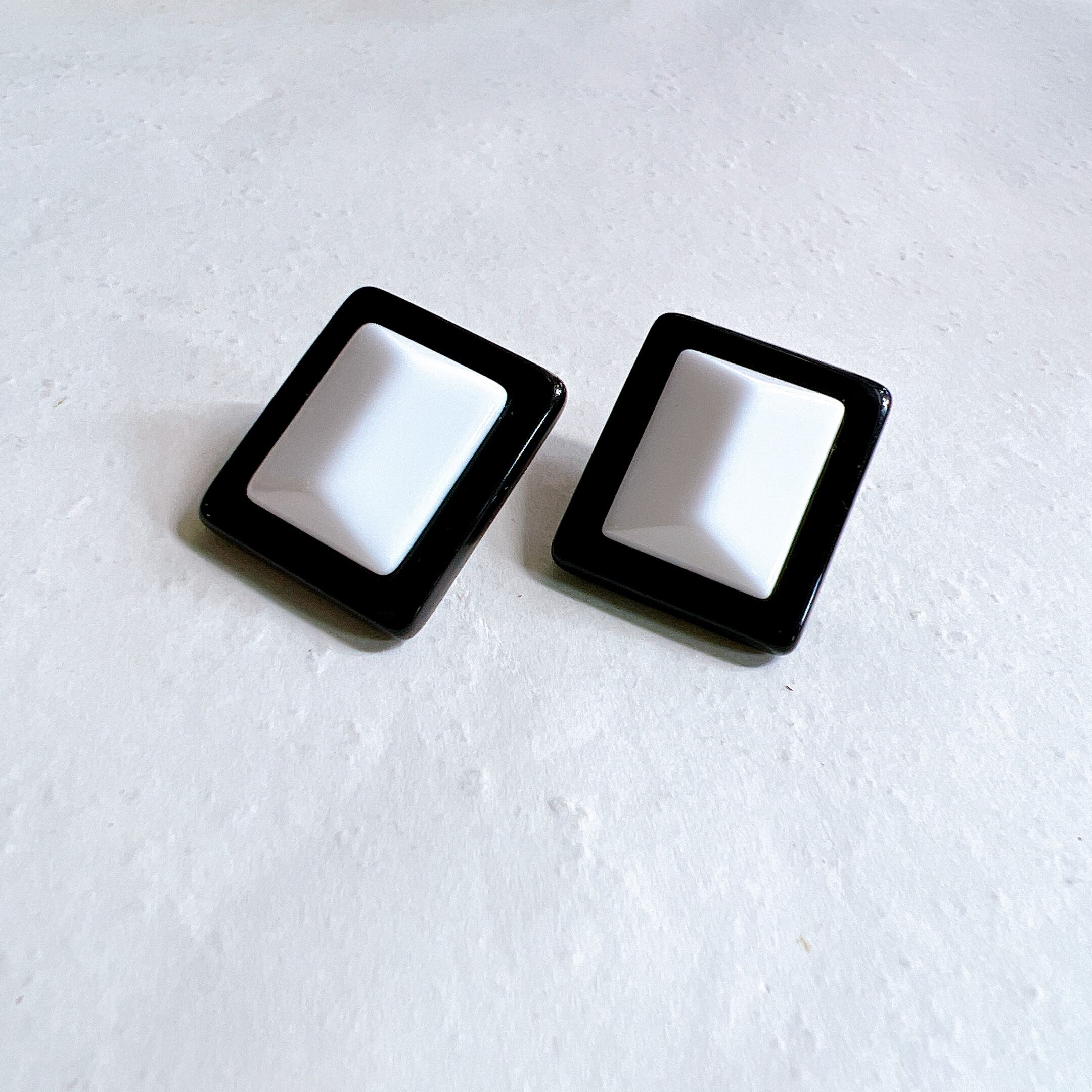 PA105-【 AVON 】エイボン・ヴィンテージピアス 1989 Deadstock 'Classic Lines Pierced Earrings Black and White | eslup_boutique