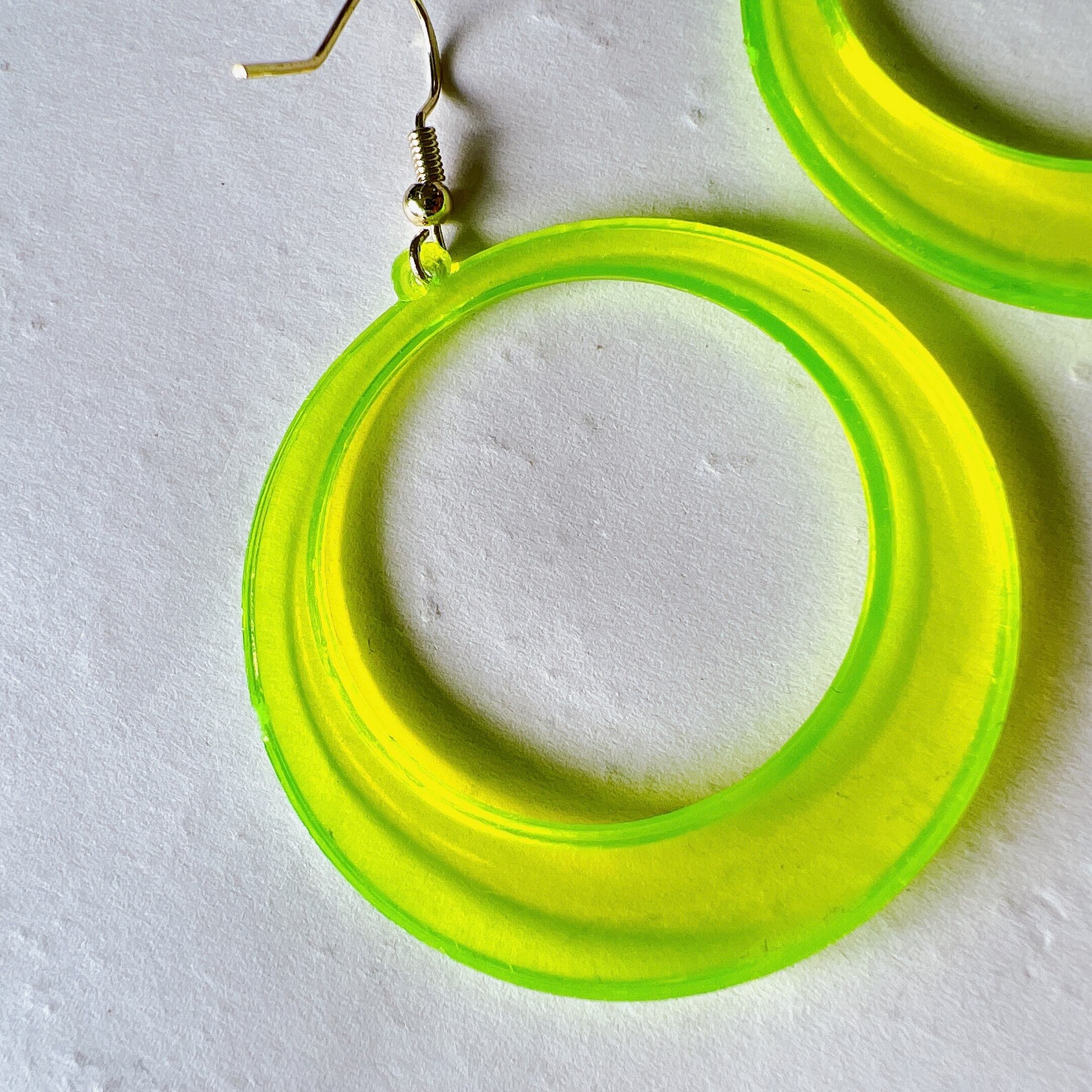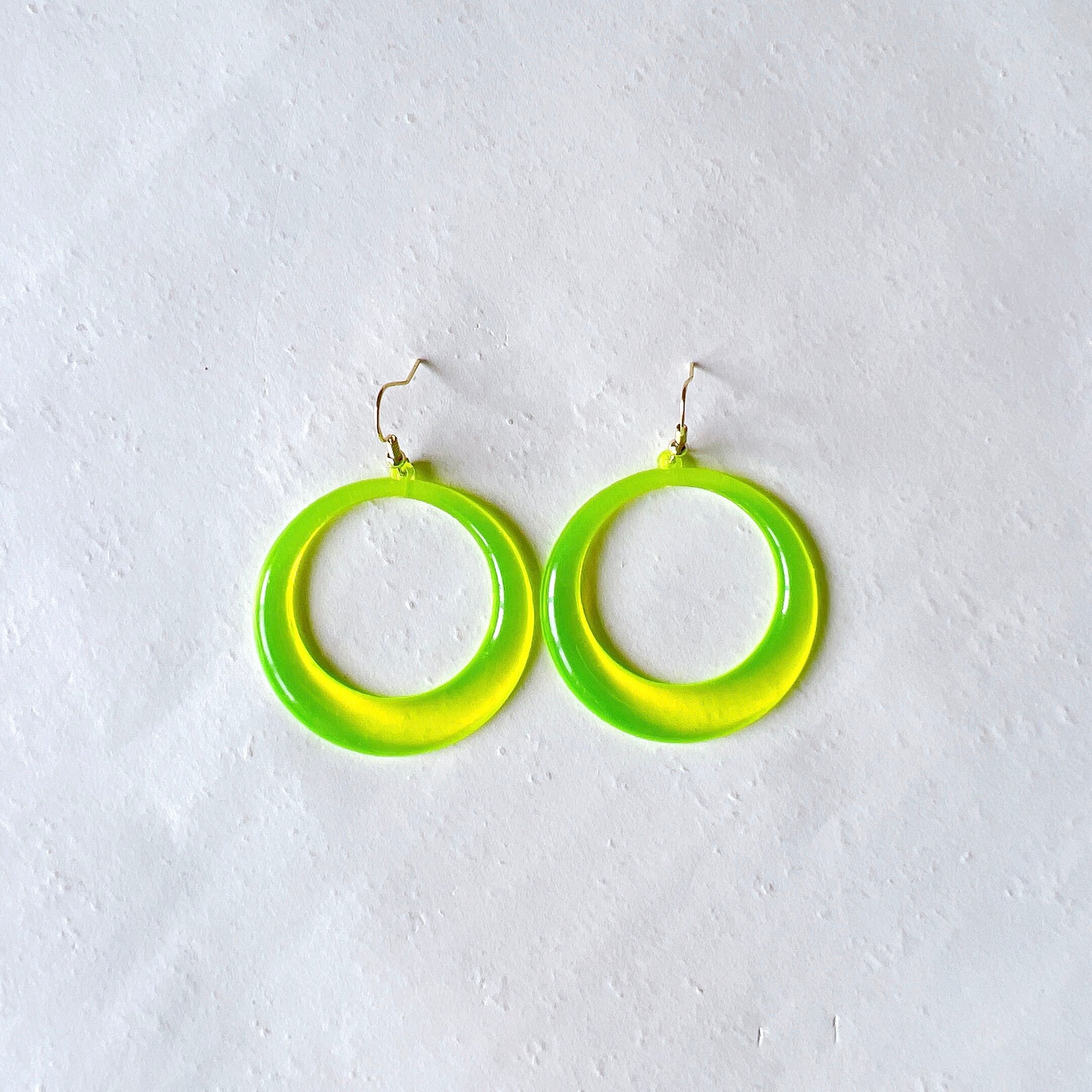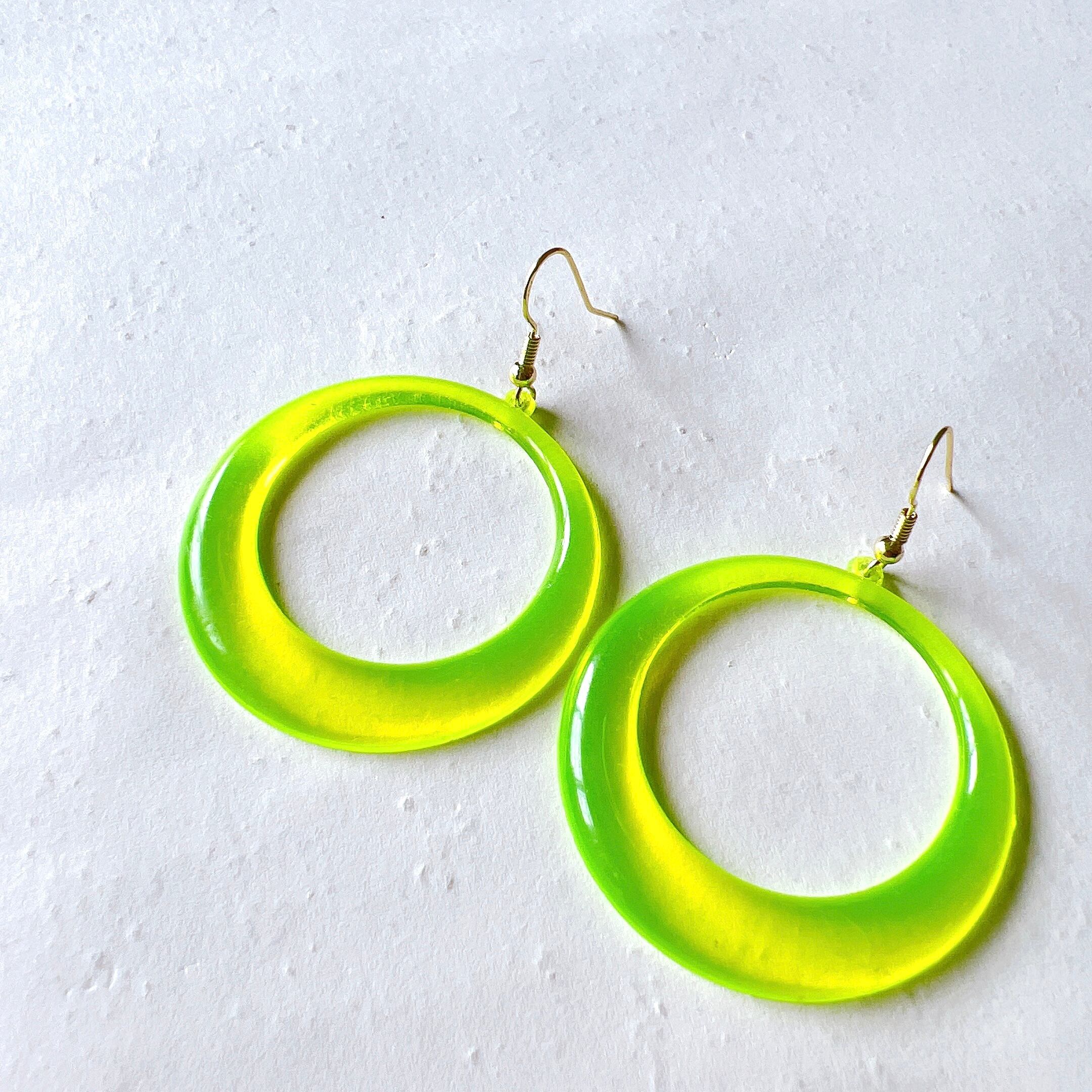 P392-ヴィンテージピアス・U.S.A. 1980s Fluorescent yellow transparent acrylic hoop earrings