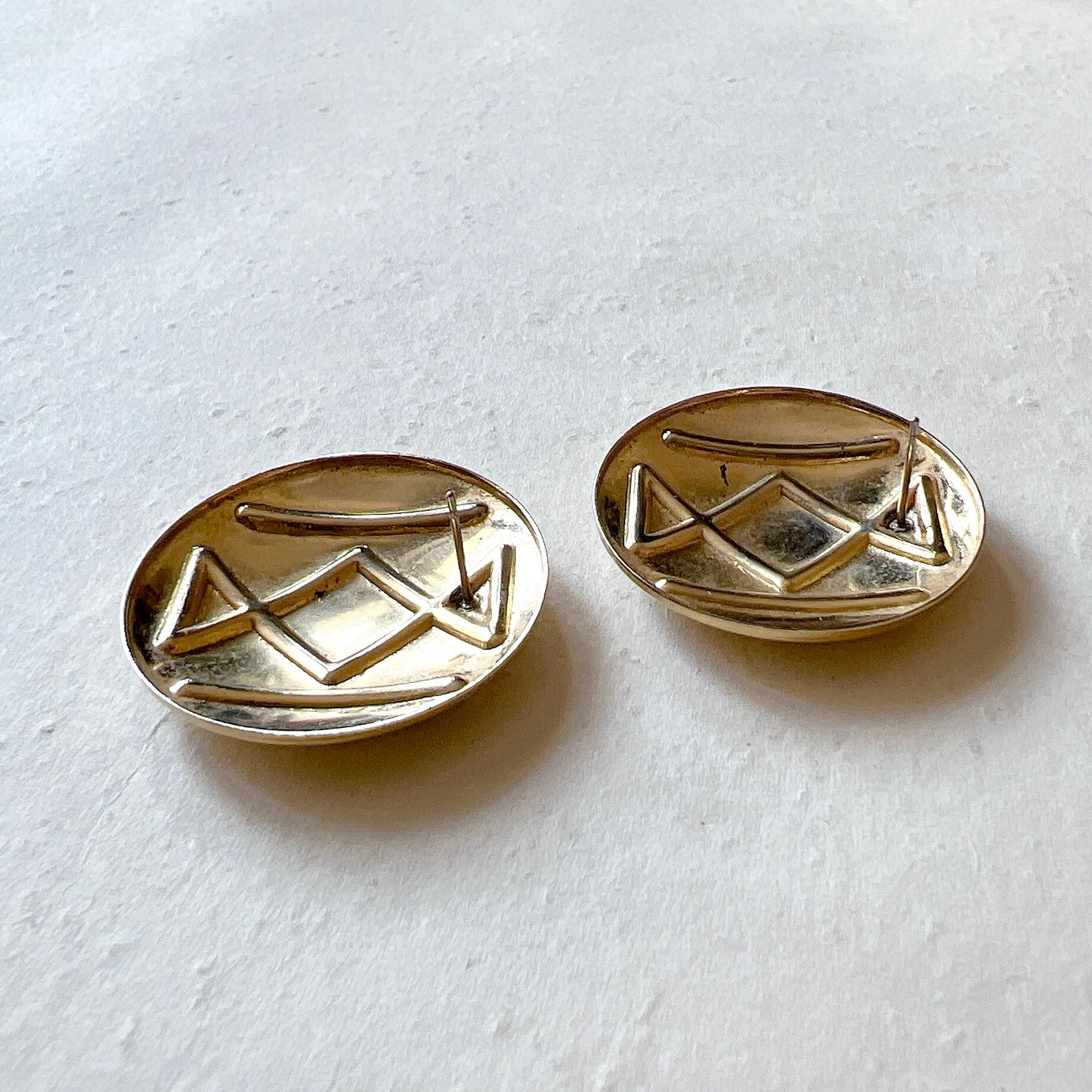 P72-ヴィンテージピアス U.S.A. 1980〜90s Gold-tone large plate earrings painted with white enamel paint | eslup_boutique