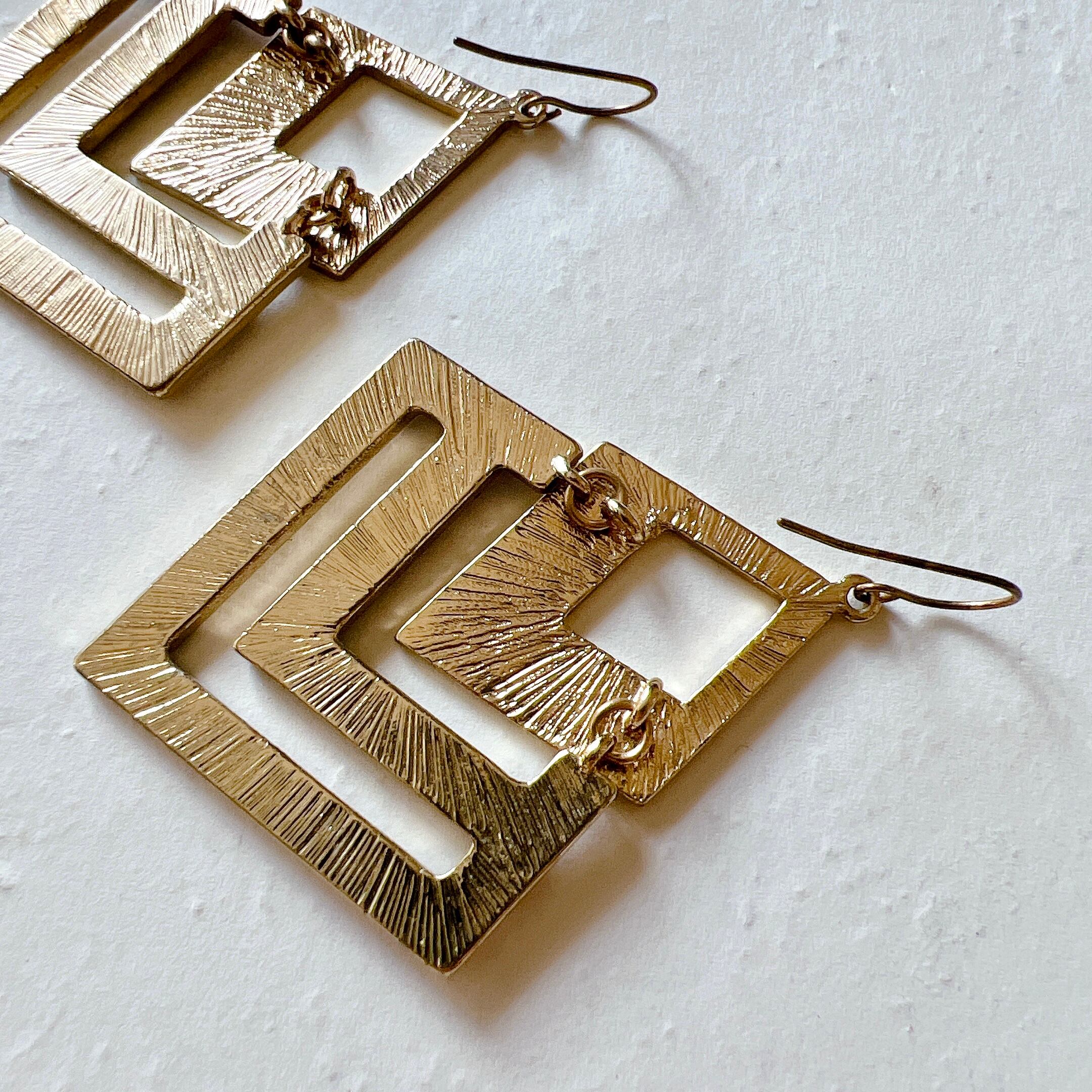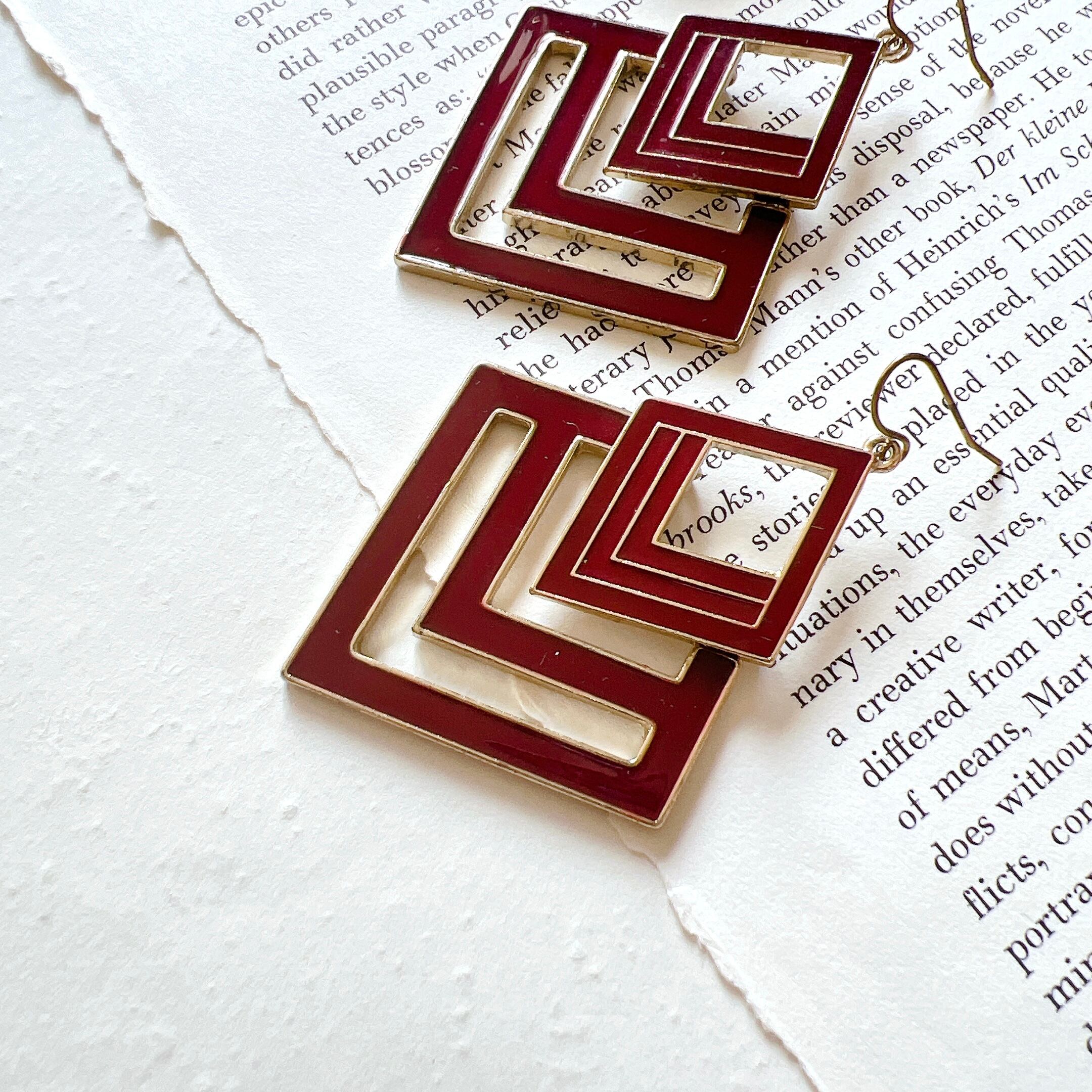 P406-ヴィンテージピアス U.S.A. 1980s Geometric Hinged Dangle Pierced Earrings Crimson