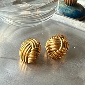 YN28-【 Napier 】ネイピア・ヴィンテージイヤリング 1980s Deadstock Gold-tone Basket weave pattern Dome-shaped earrings with volume | eslup_boutique