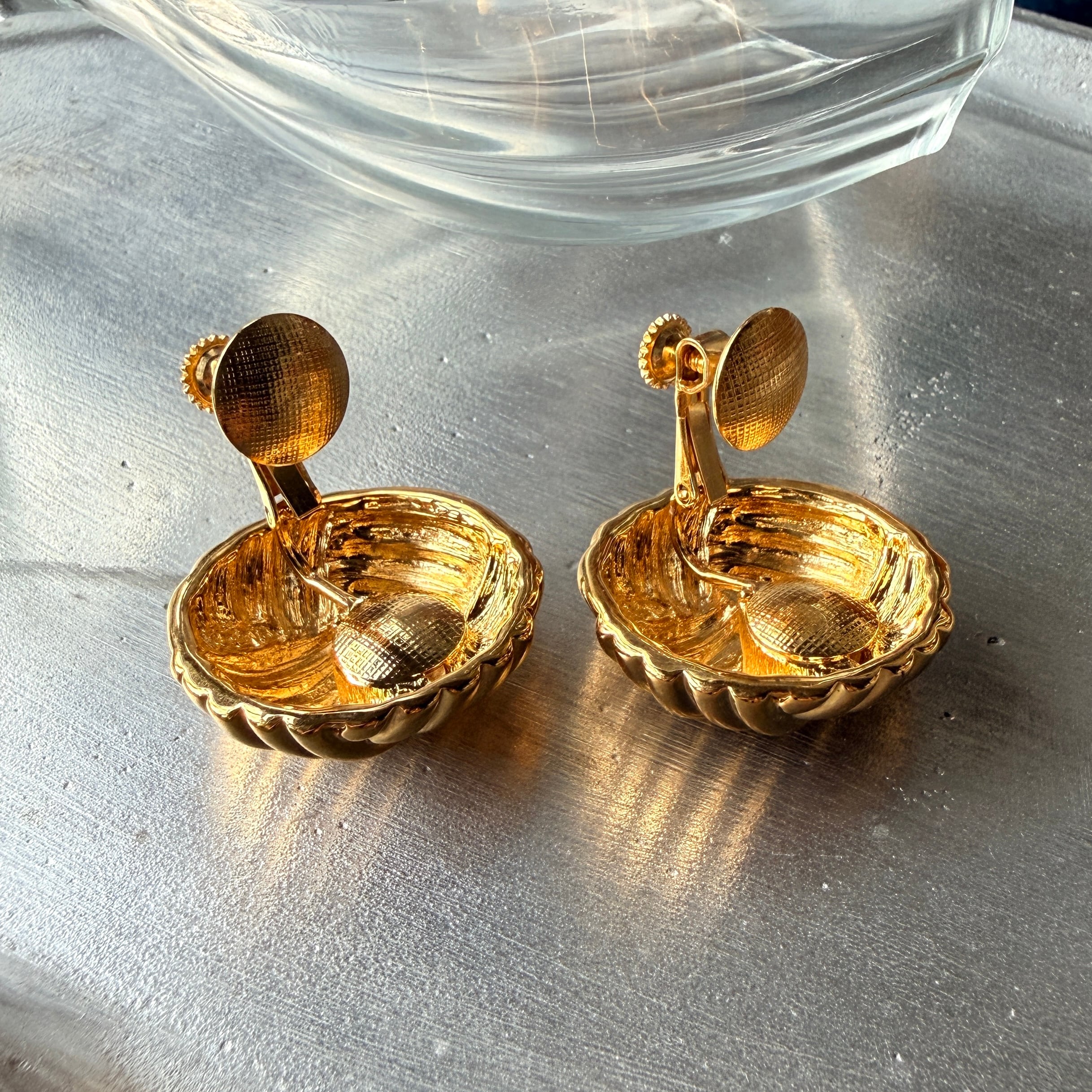 ゴールドトーンドーム型イヤリング。