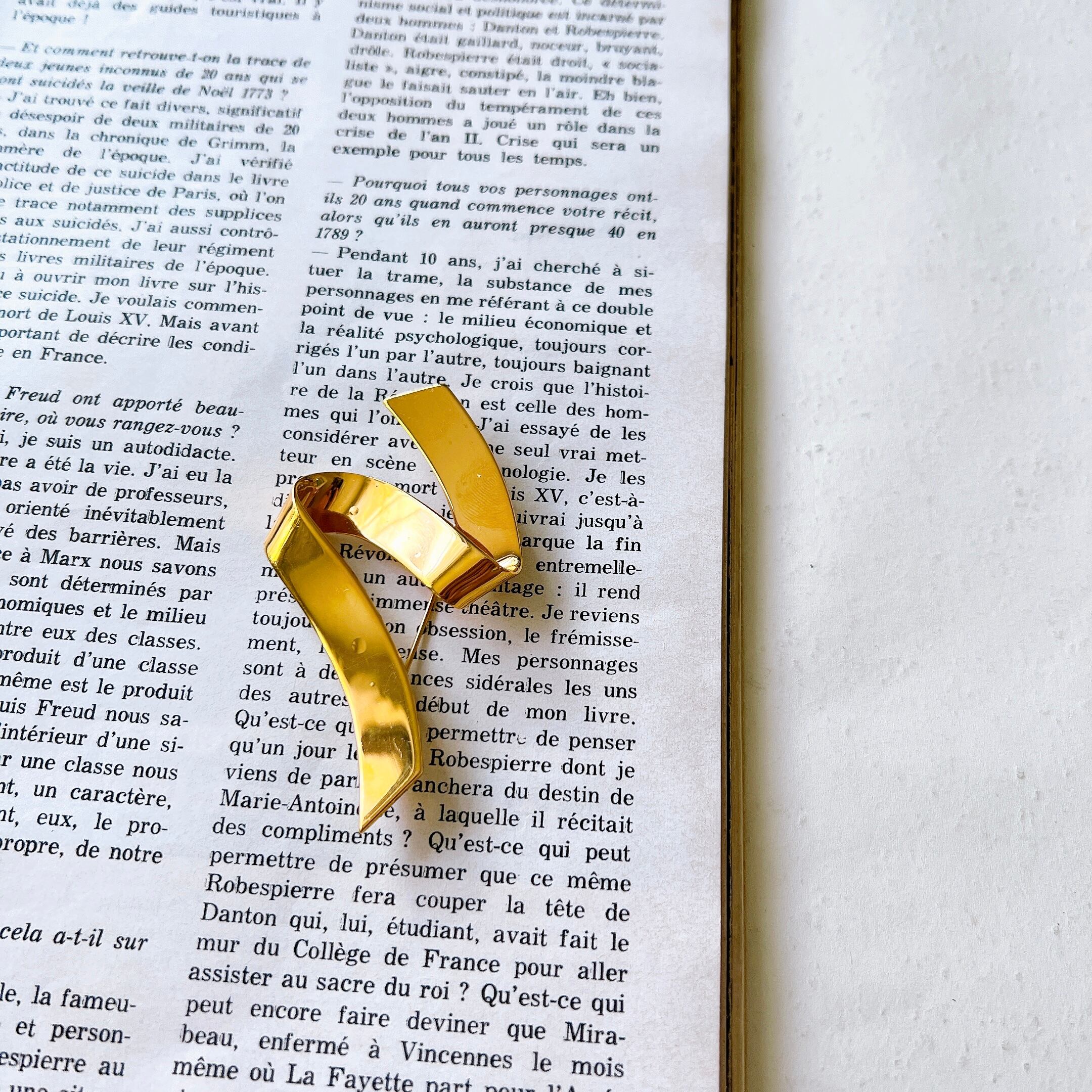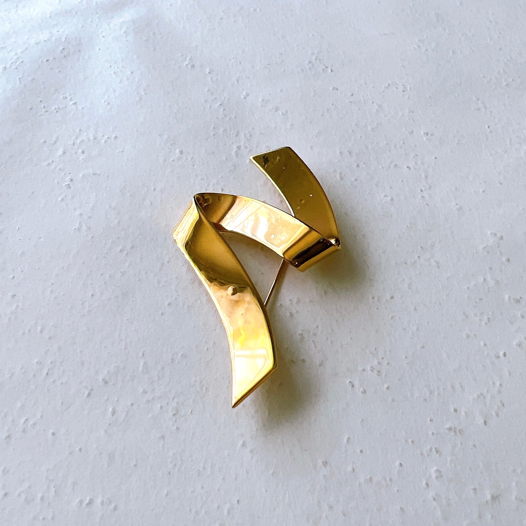 艶めくゴールドトーンの、イニシャル"N"を描いたブローチ。リボンテープを優雅に折り曲げてNを模ったようなデザイン。