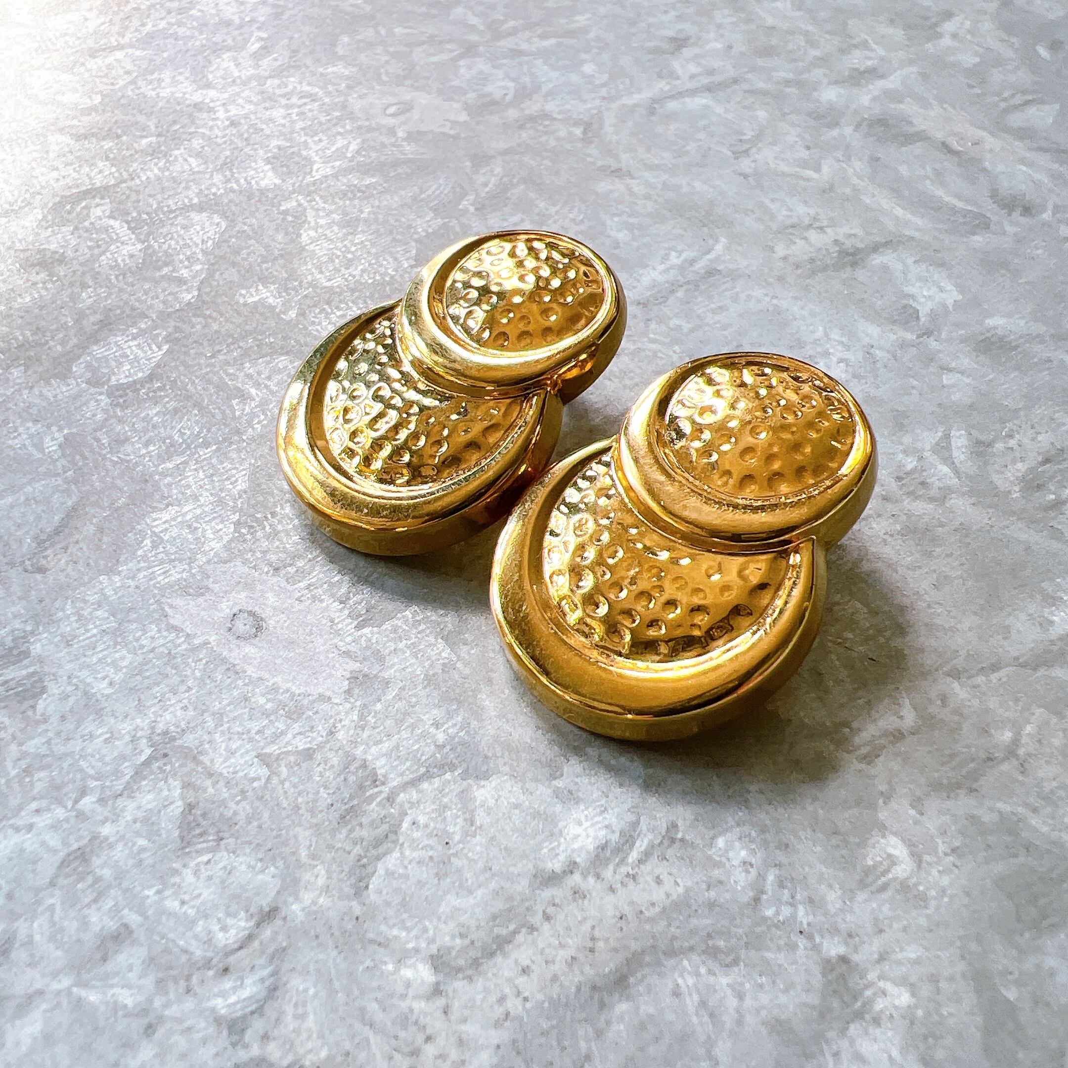 PA130-【 AVON 】エイボン・1991 Deadstock Golden Glimmer Pierced Gold tone Earrings Hammered Look | eslup_boutique