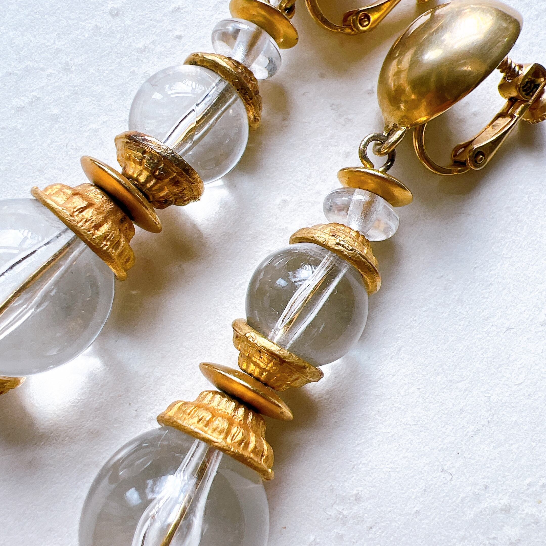 Y365-ヴィンテージイヤリング USA 1960〜70s Clear acrylic and gold tone beads Long swinging earrings | eslup_boutique