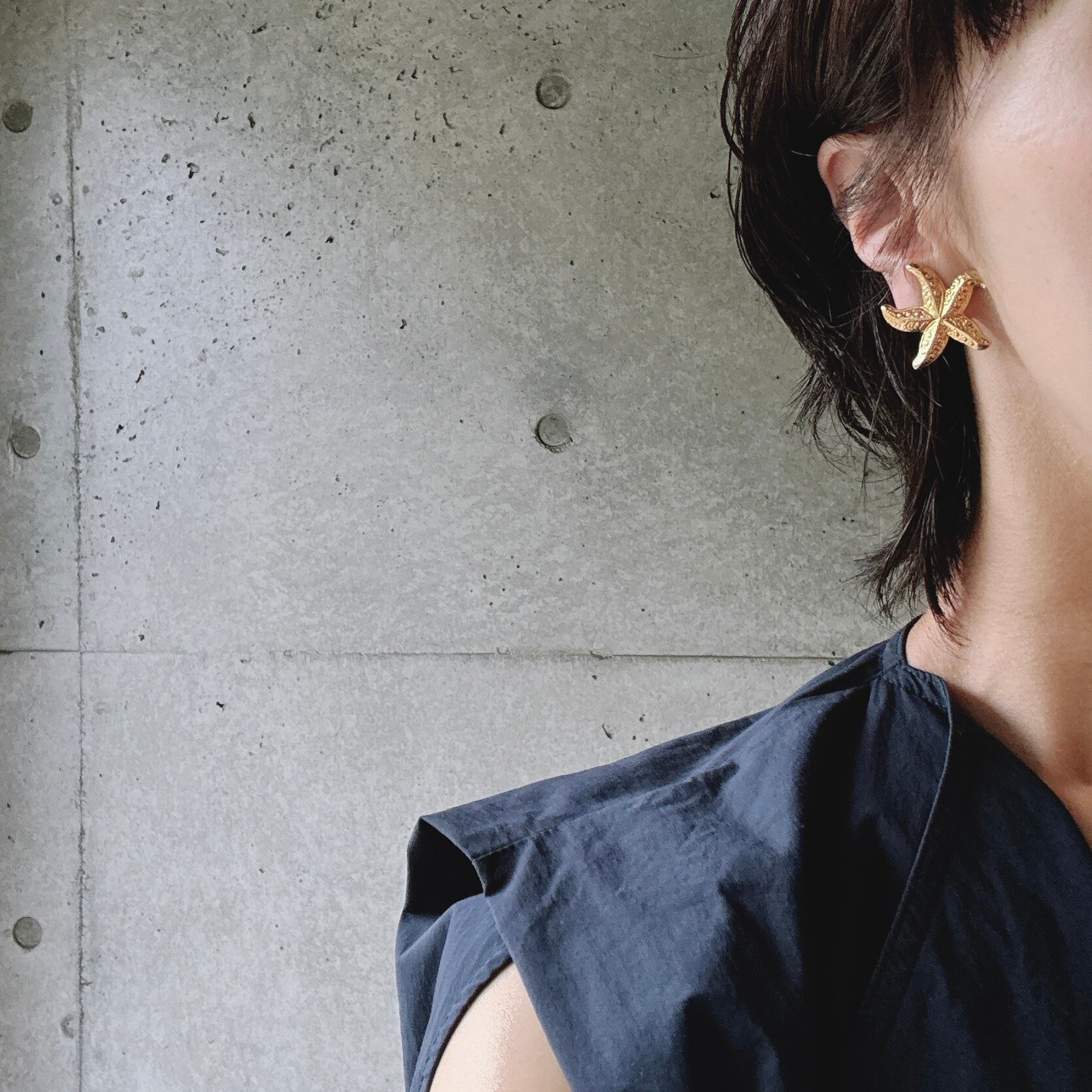 ゴールドトーンのスターフィッシュモチーフクリップイヤリング。