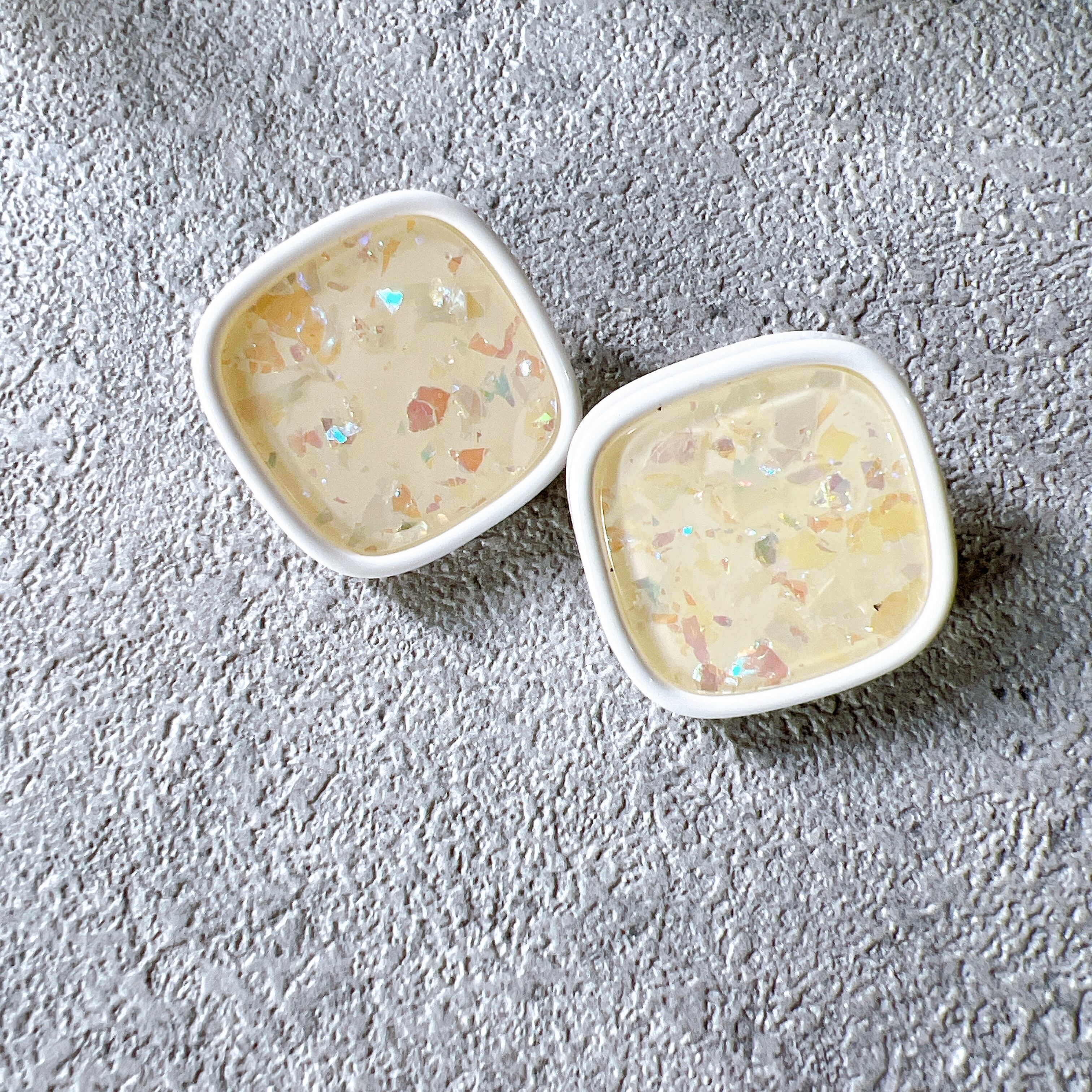 グリッターが煌めく、スクエア型のアクリルピアス。
