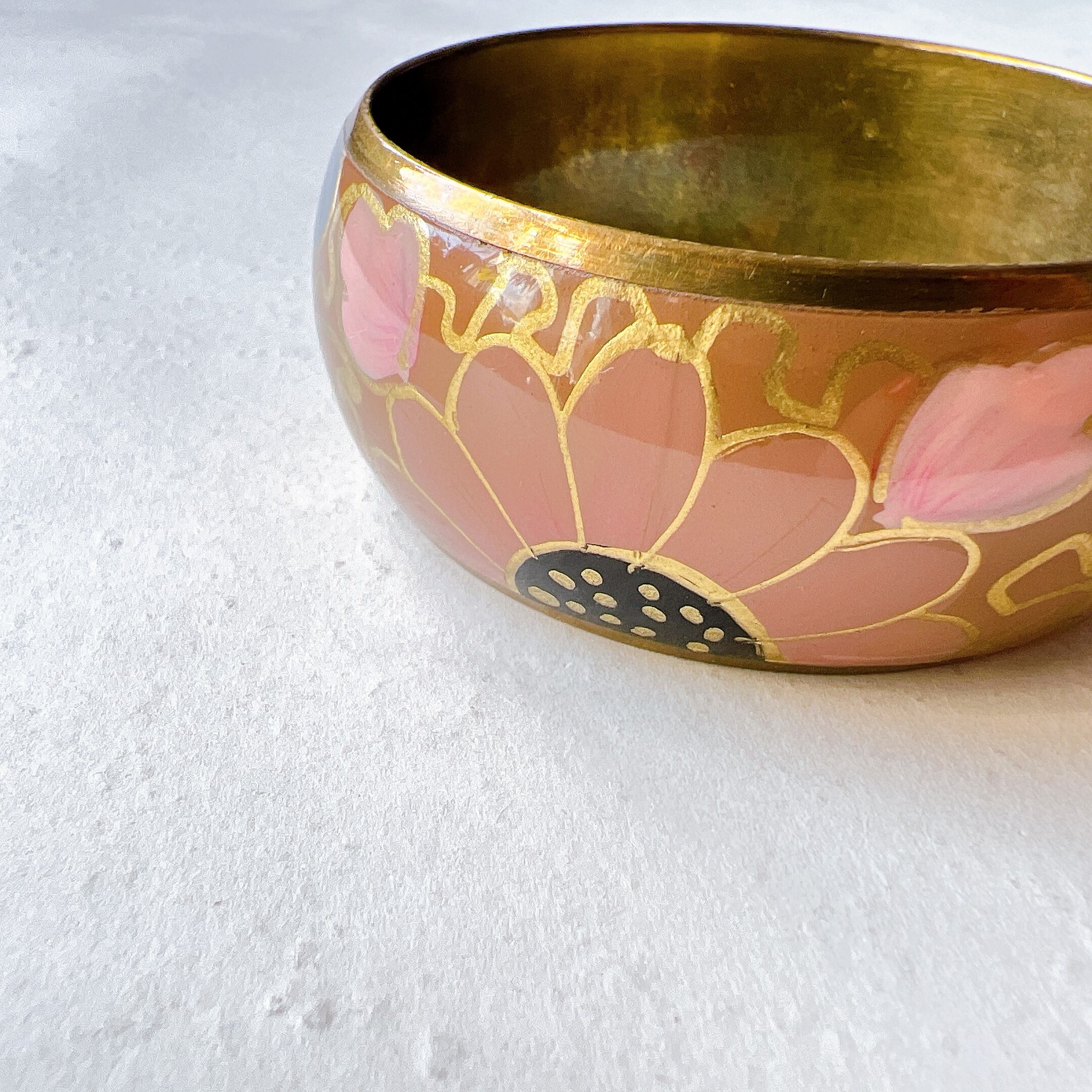 フローラルな柄がエナメルペイントされた真鍮バングル。