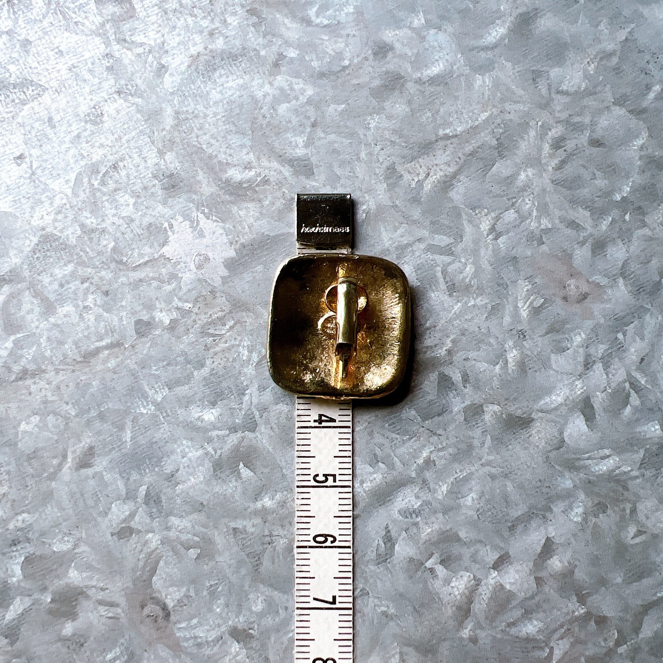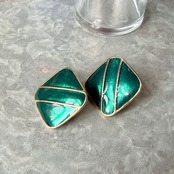 ゴールドトーンをベースにグリーンエナメルの、スクエアクリップイヤリング。