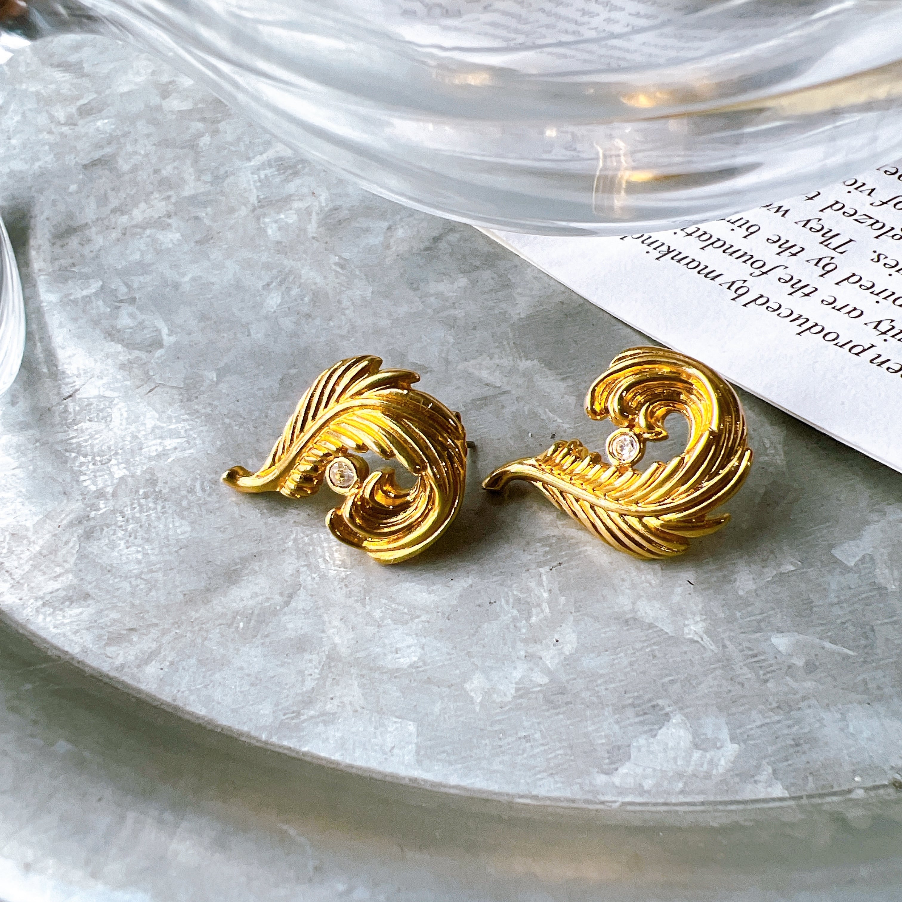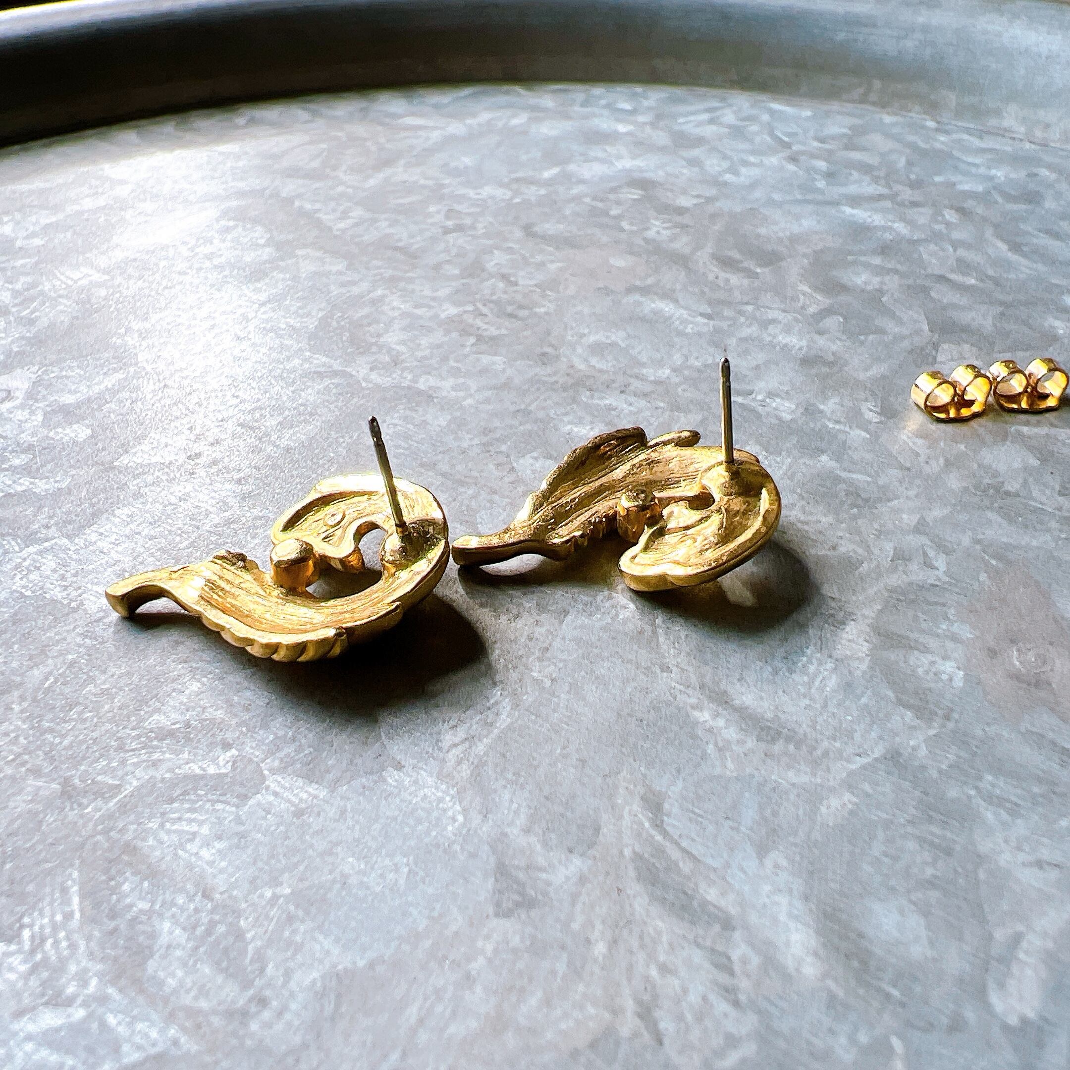 PA228-【 AVON 】エイボン・ヴィンテージピアス 1990s Gold-tone feather motif rhinestone pierced earrings | eslup_boutique