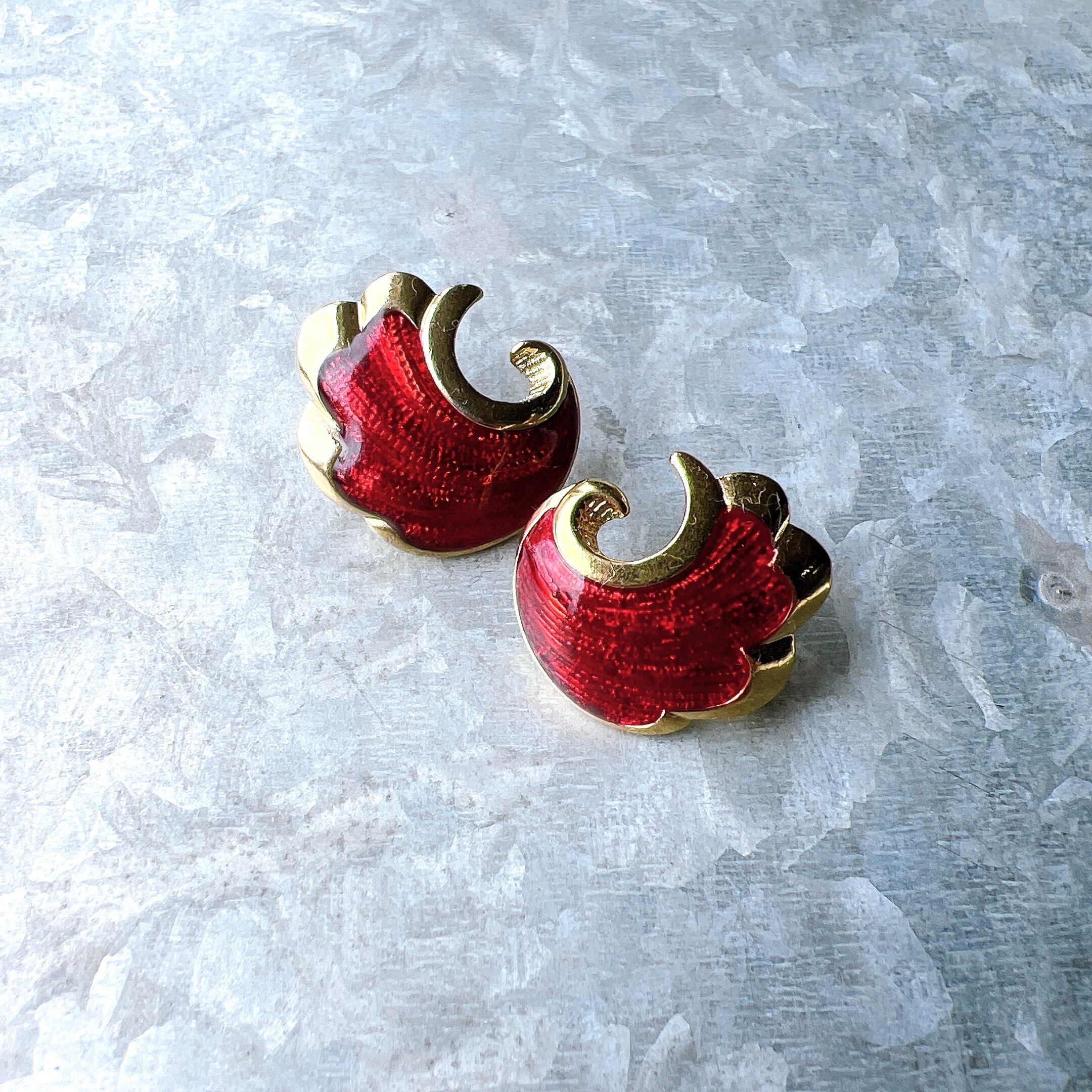PA234-【 AVON 】エイボン・ヴィンテージピアス 1980s Gold Tone Red Enamel Swirl Style Pierced Earrings | eslup_boutique