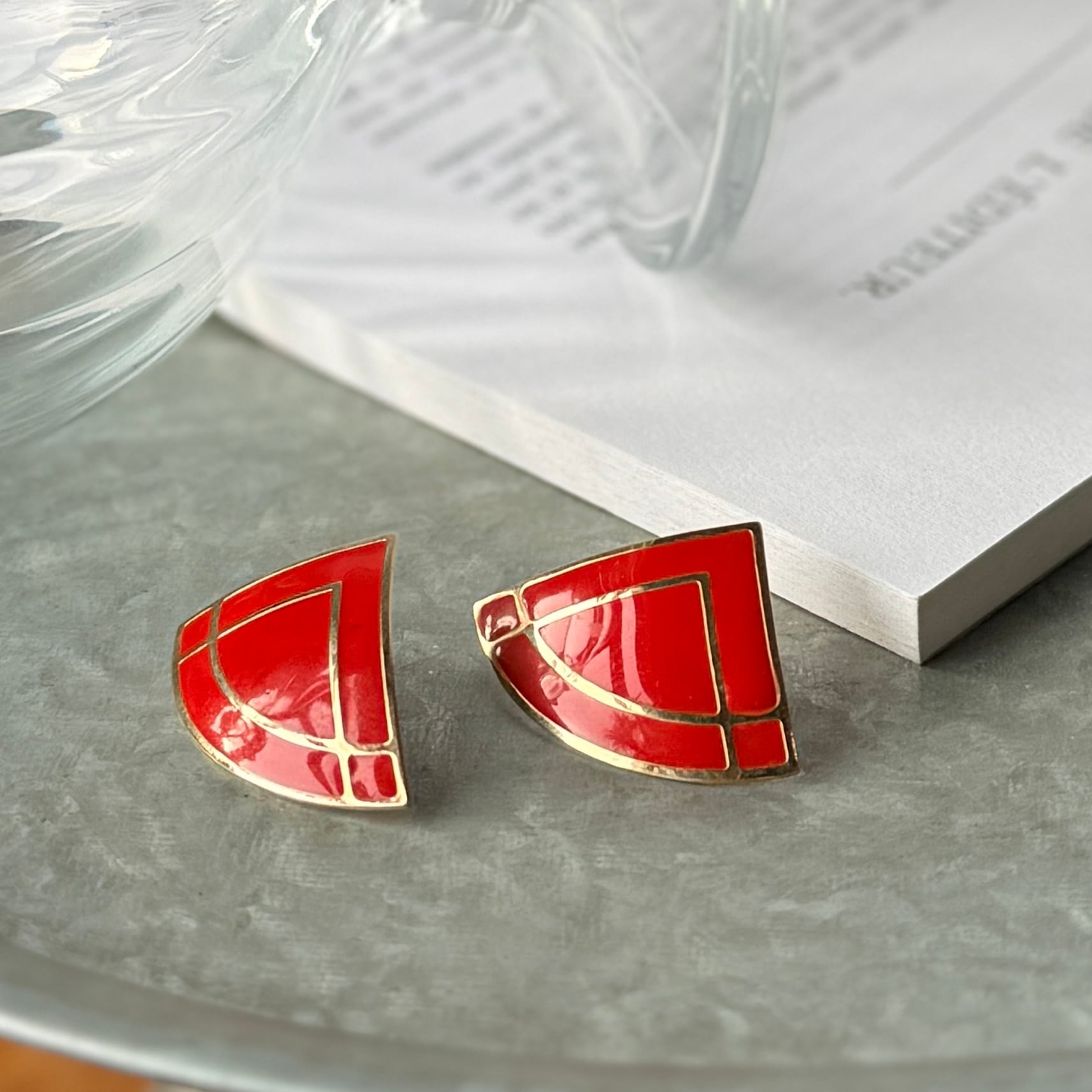 YA144-【 AVON 】エイボン・ヴィンテージイヤリング 1970〜80s "Color Splash" Red & Gold Fan Shaped Earrings | eslup_boutique