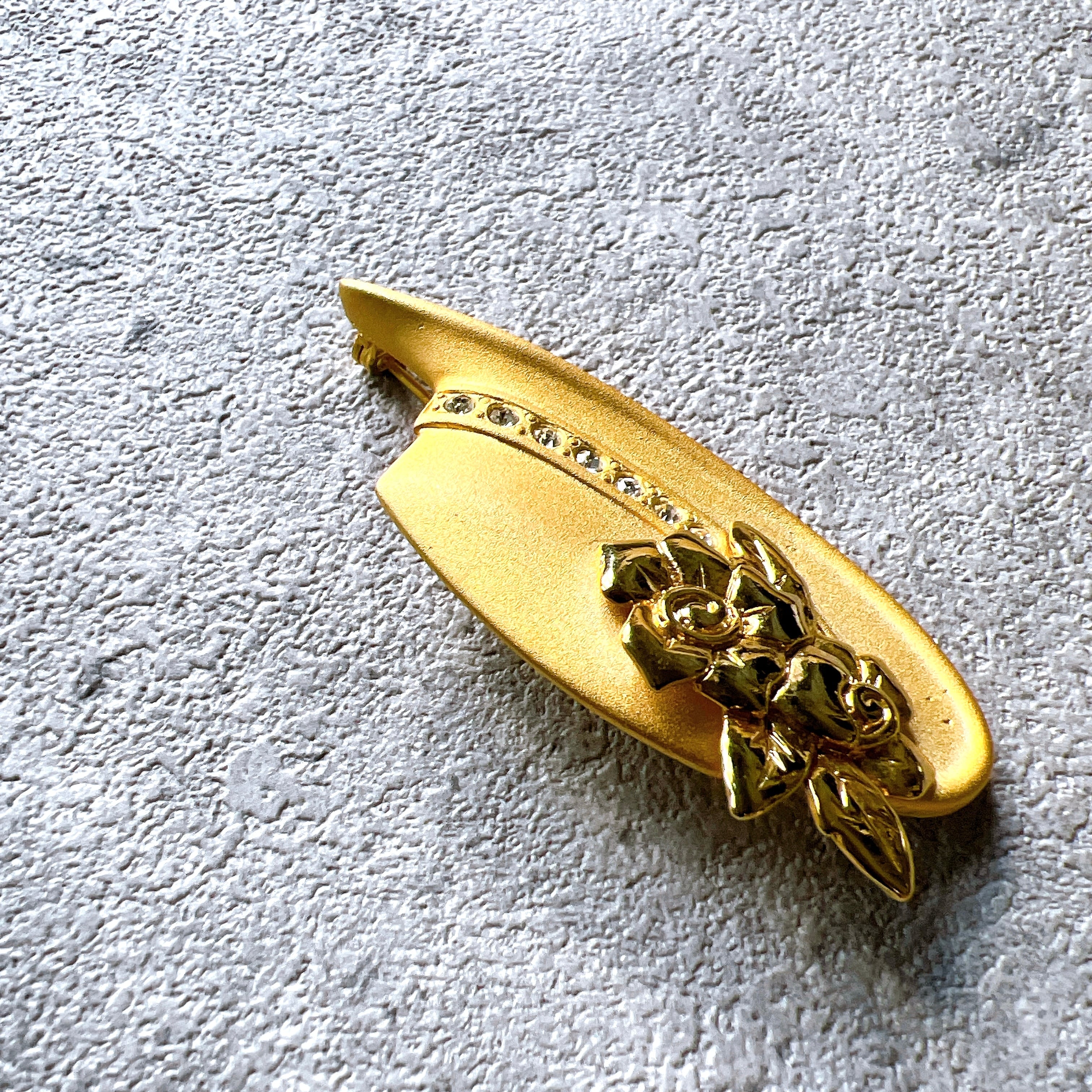 SC118-【 TORINO 】トリノ・ヴィンテージブローチ U.S.A. 1960〜70s Gold Tone Rhinestone Flower Hat Brooch | eslup_boutique