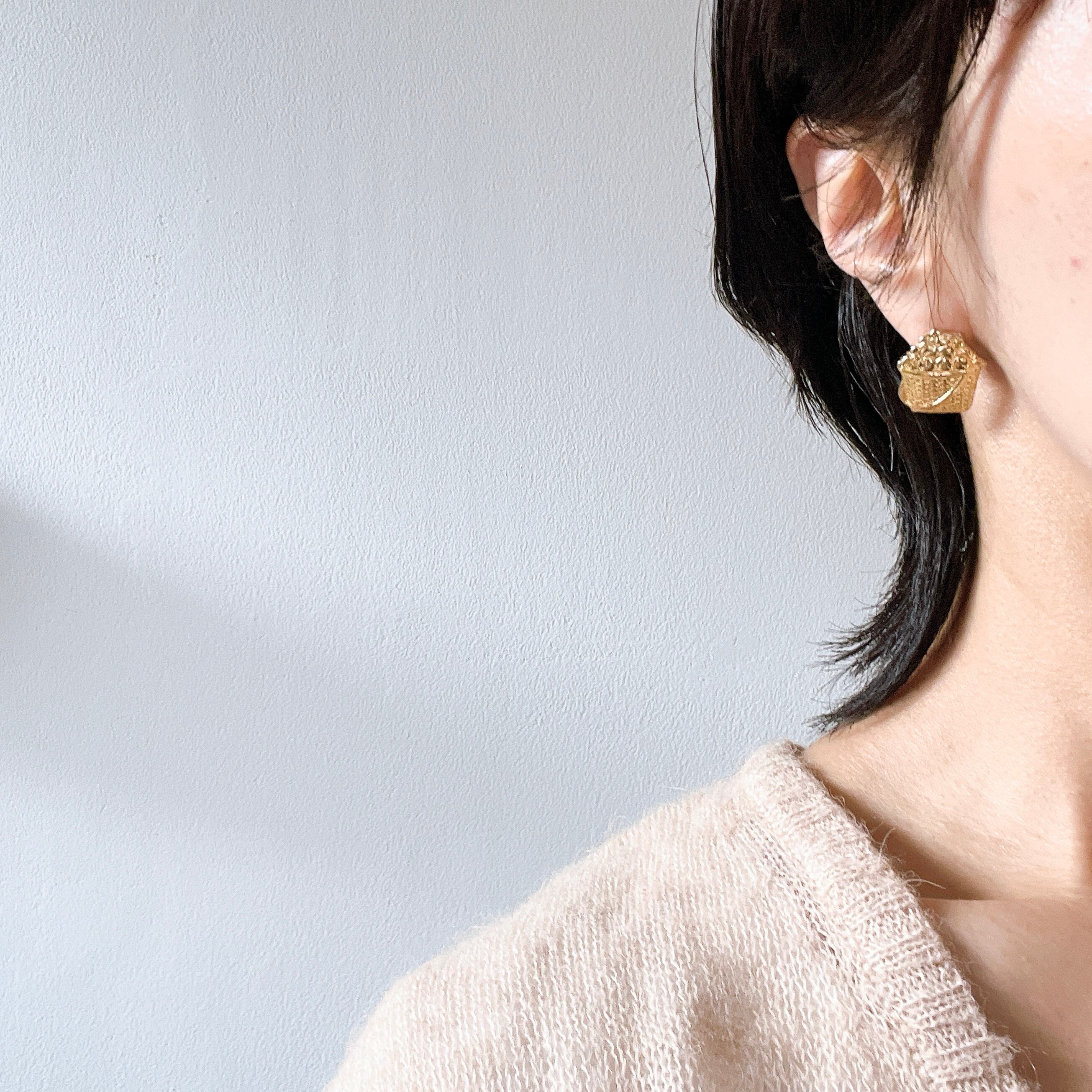P539-【 CHARTER CLUB 】ヴィンテージピアス U.S.A. 1990〜2000s Deadstock Gold Tone Fruit Basket Pierced Earrings | eslup_boutique