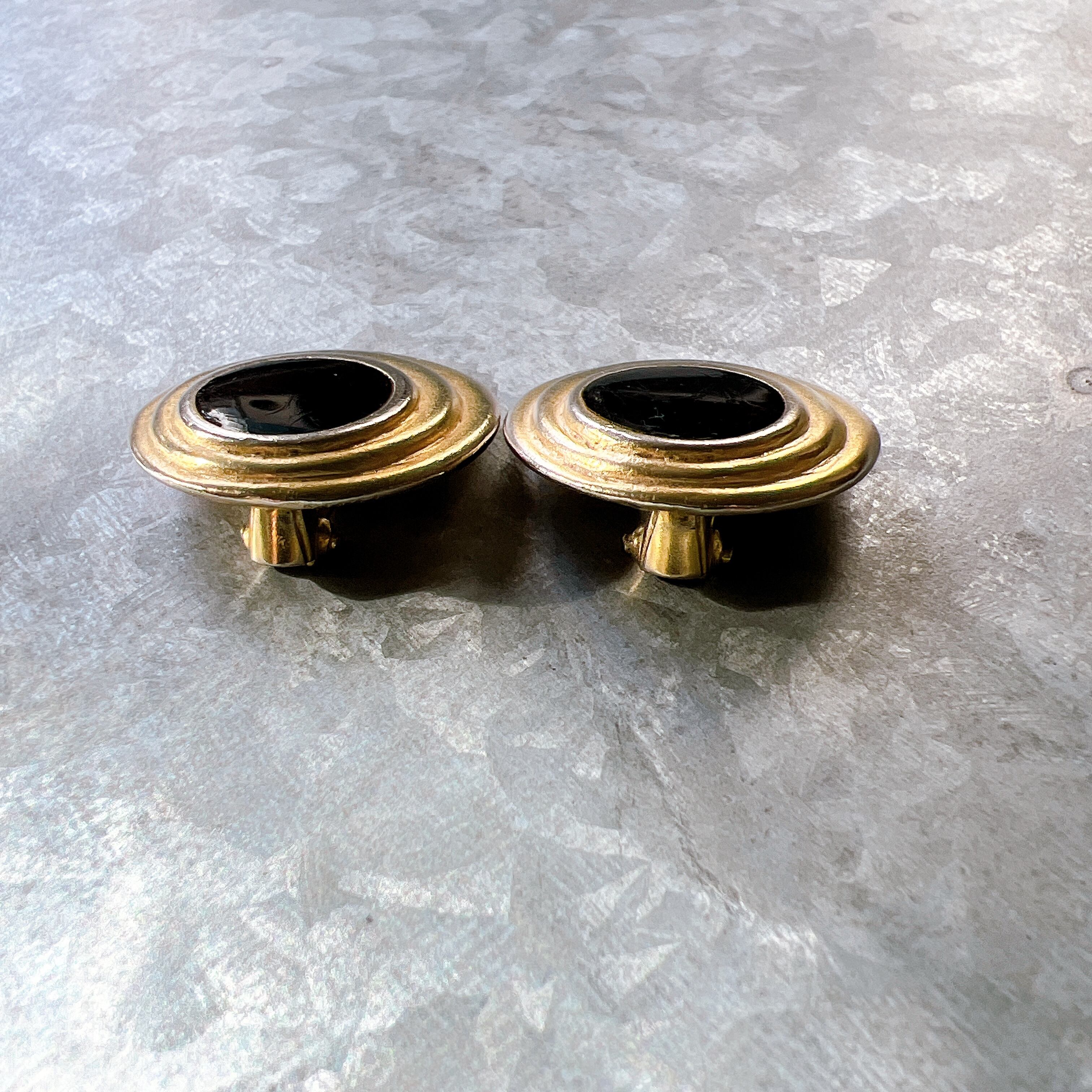 Y1044-【 Ann Taylor 】ヴィンテージイヤリング U.S.A. 1980s Deadstock Gold Tone Black Enamel Paint Round Earrings | eslup_boutique