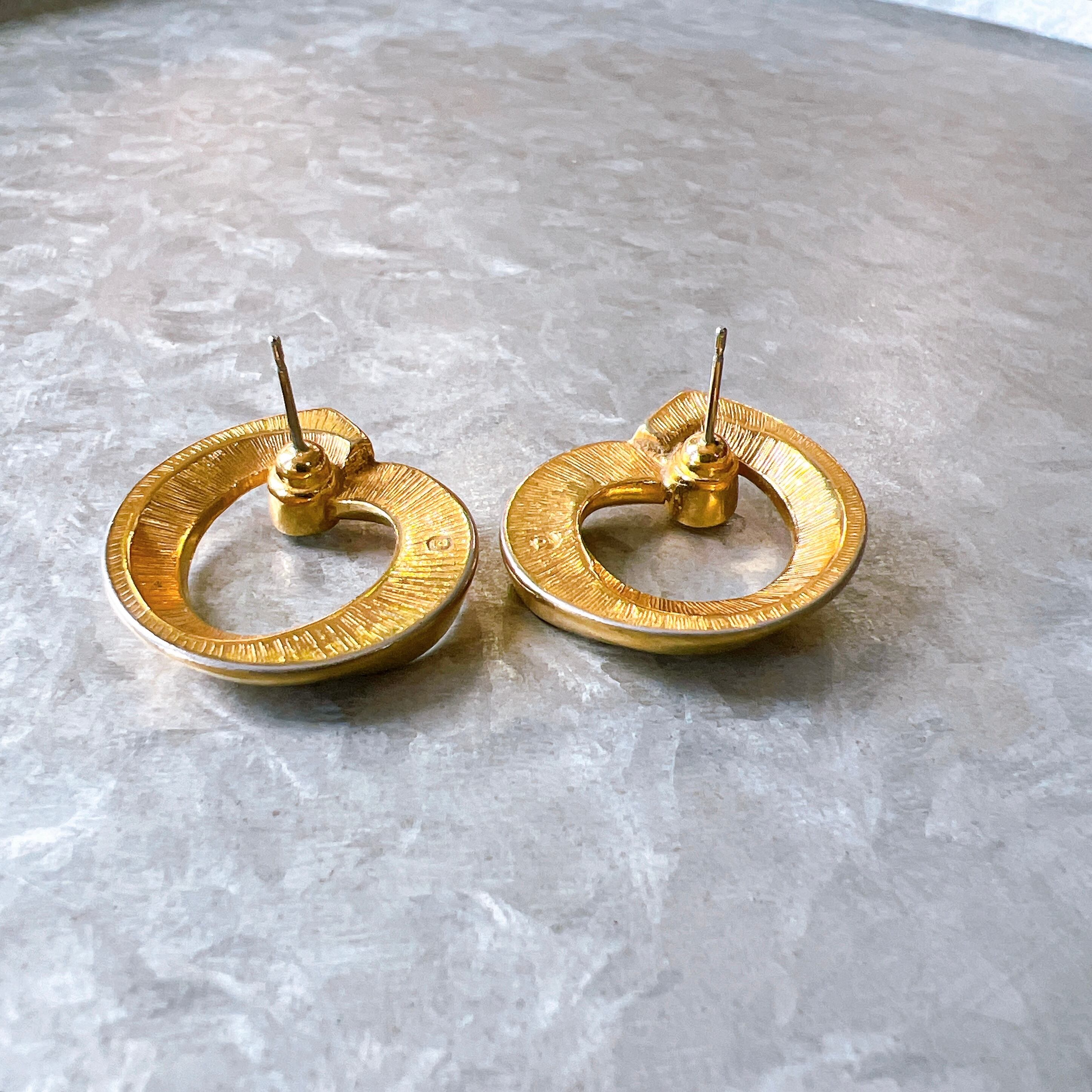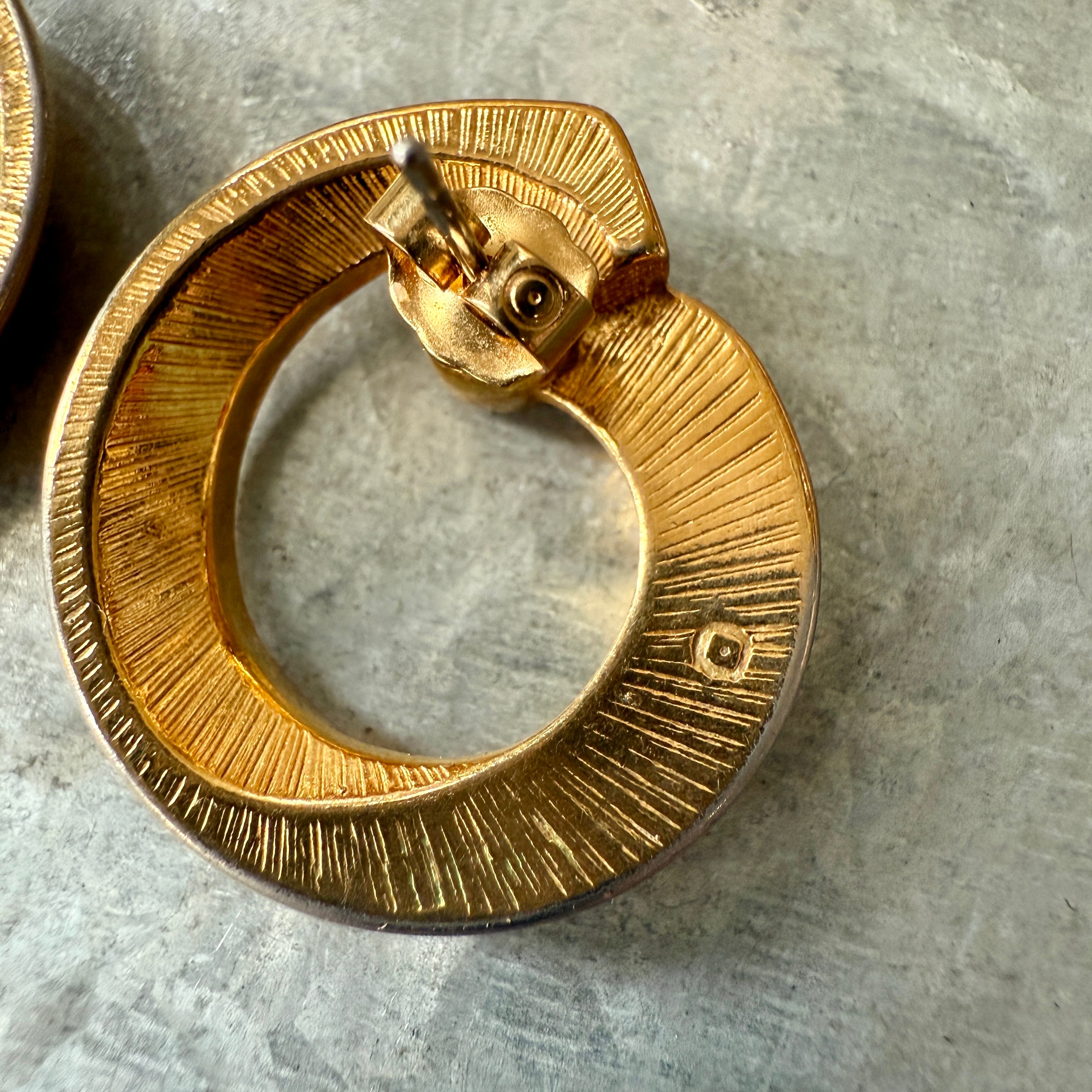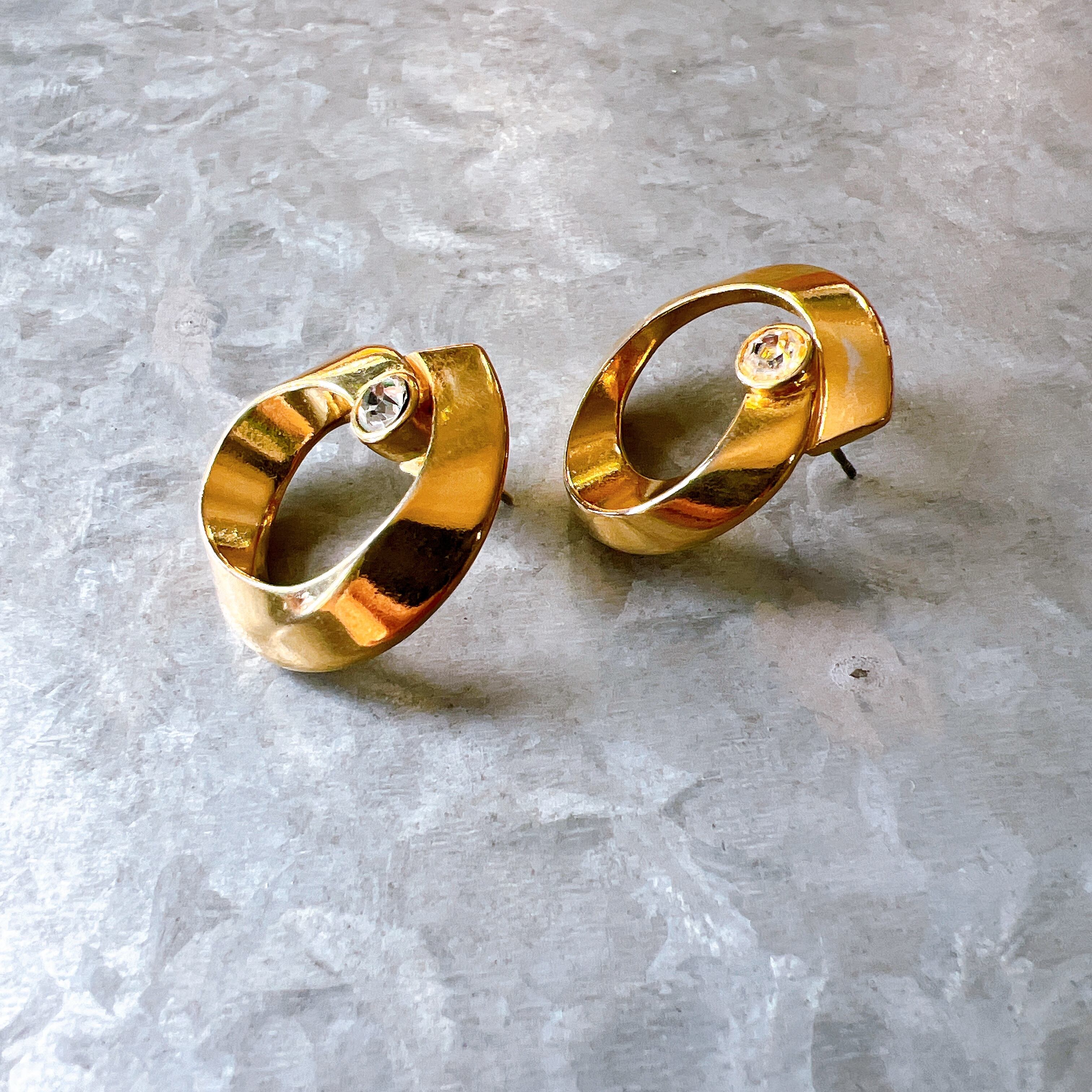 PA276-【 AVON 】エイボン・ヴィンテージピアス 1987 Gold Tone Circle And Crystal Accent Pierced Earrings | eslup_boutique