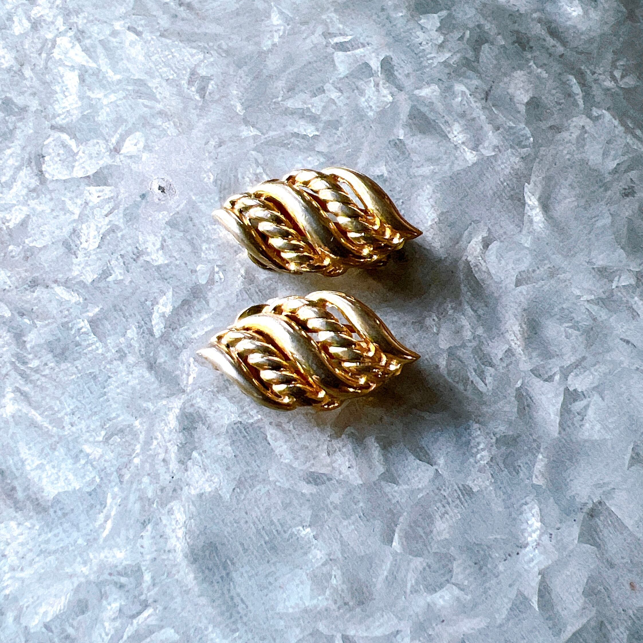 ゴールドトーンのオープンワークスクリューイヤリング。
