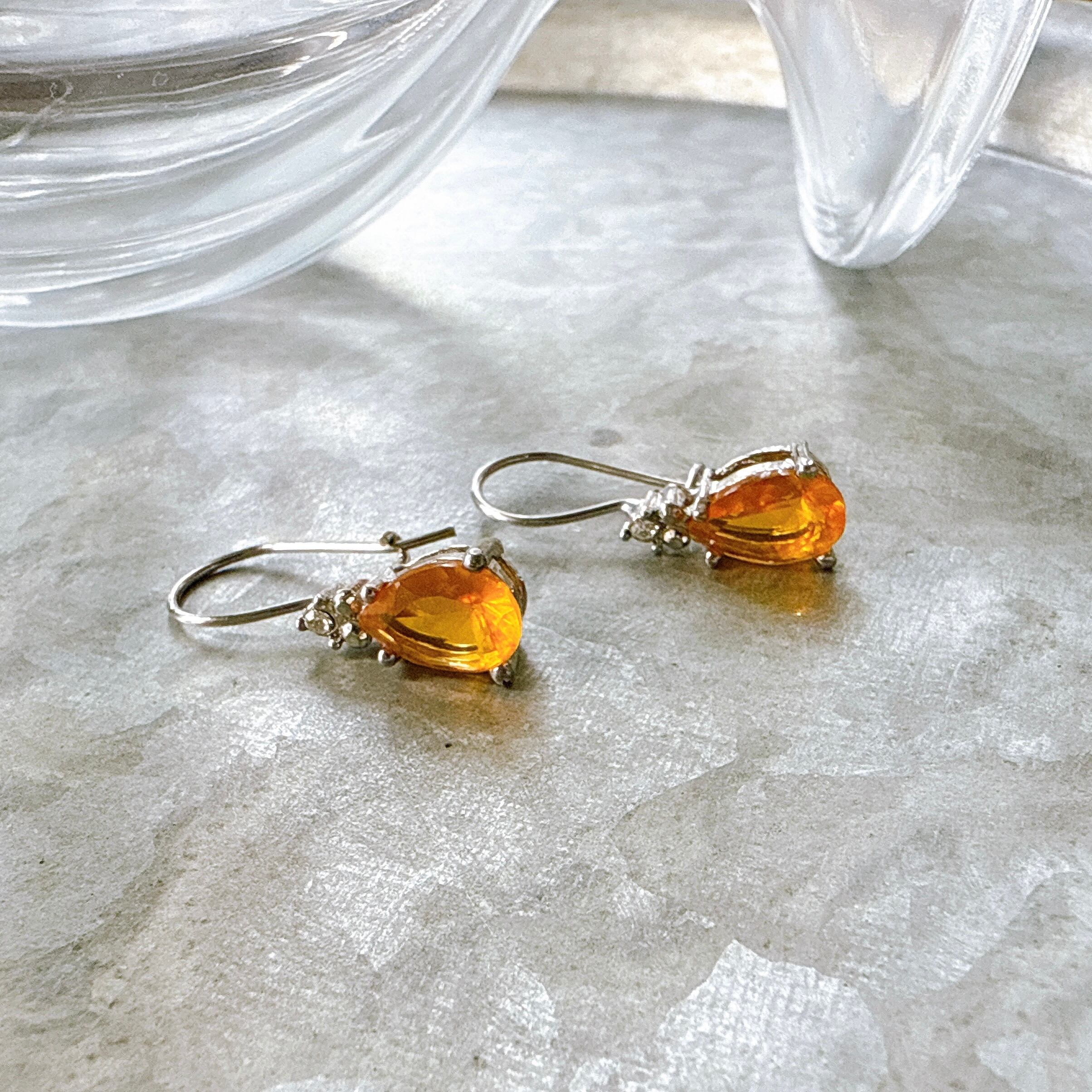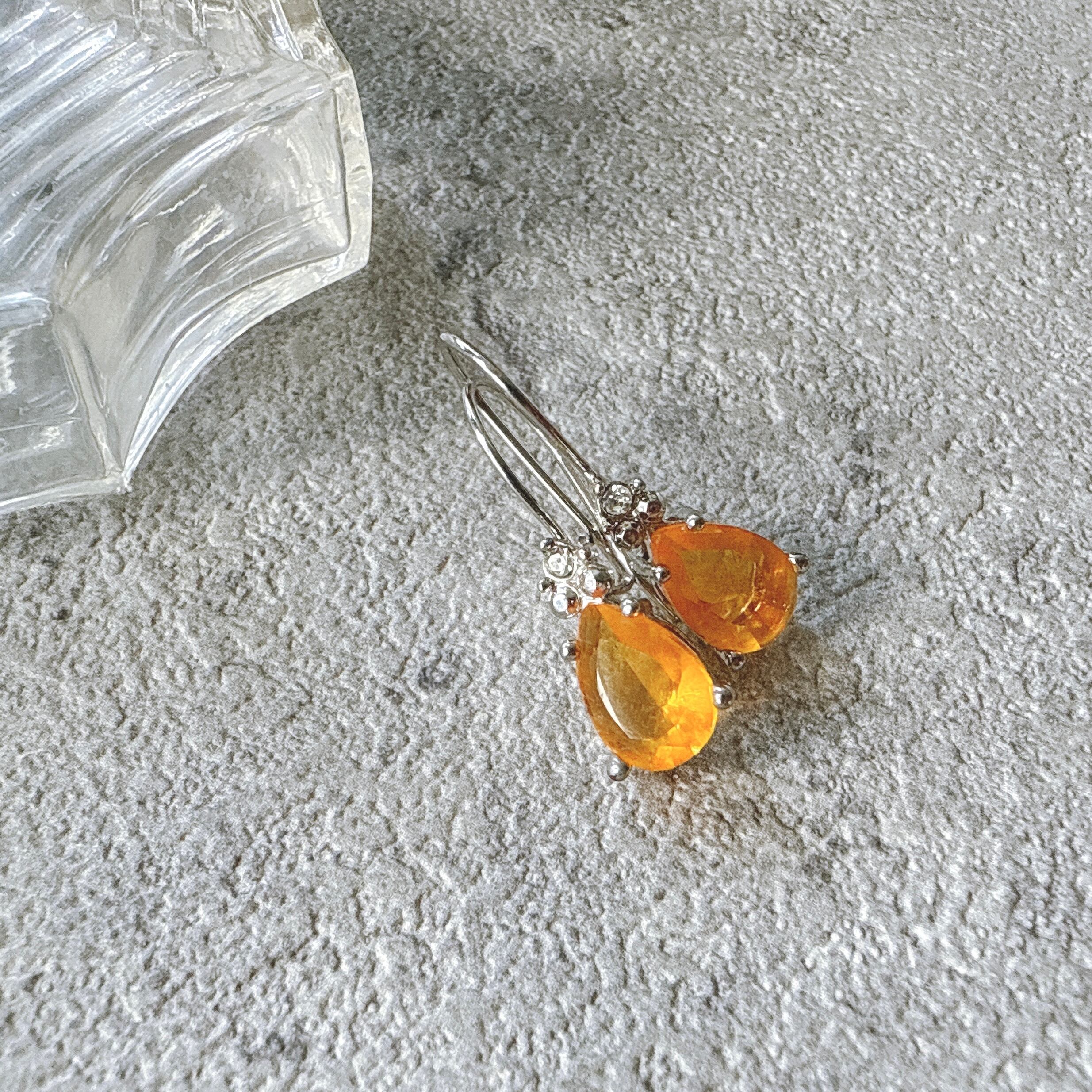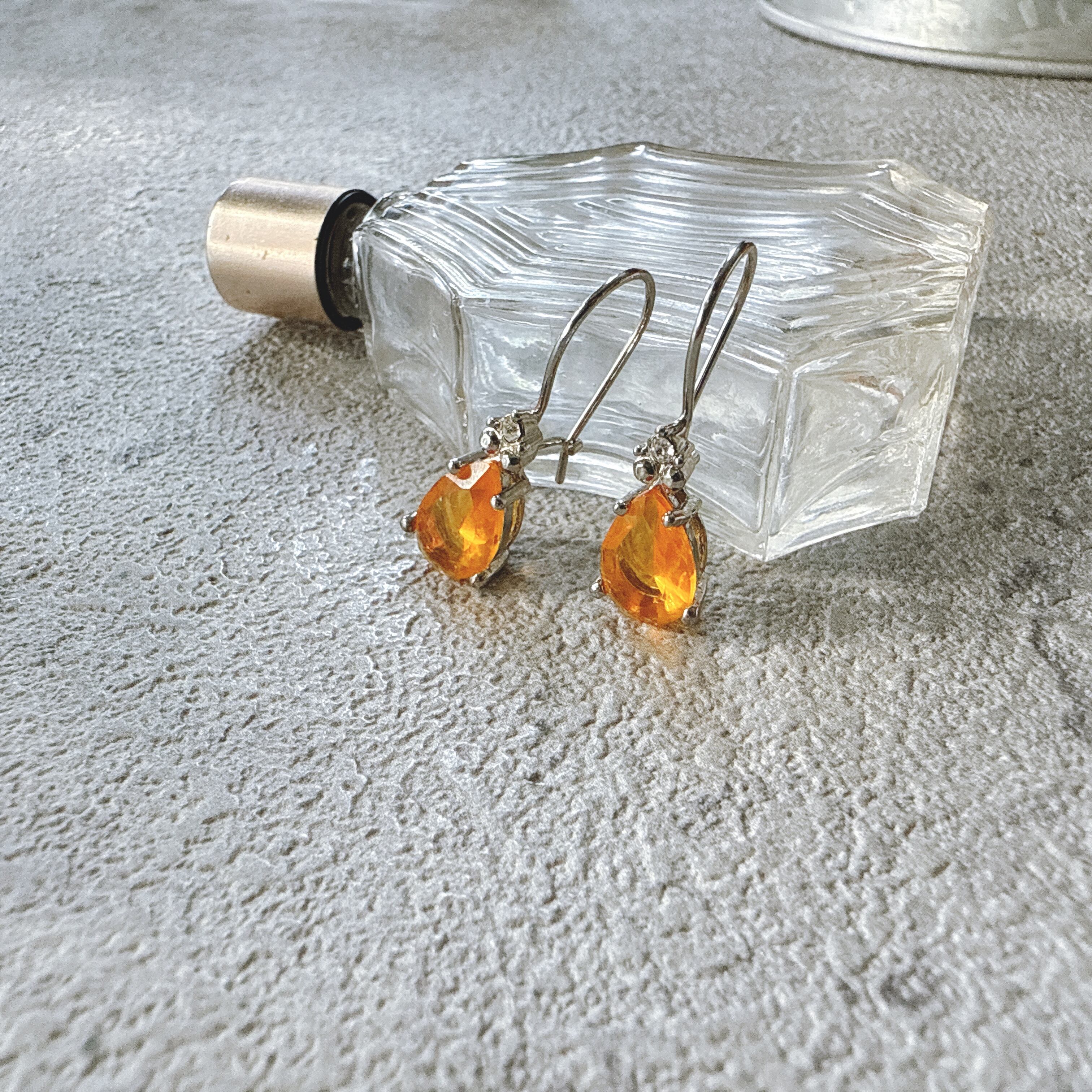 PA287-【 AVON 】エイボン・ヴィンテージピアス 2006 Deadstock Silver Tone Citrine Glass Rhinestone Pierced Earrings | eslup_boutique