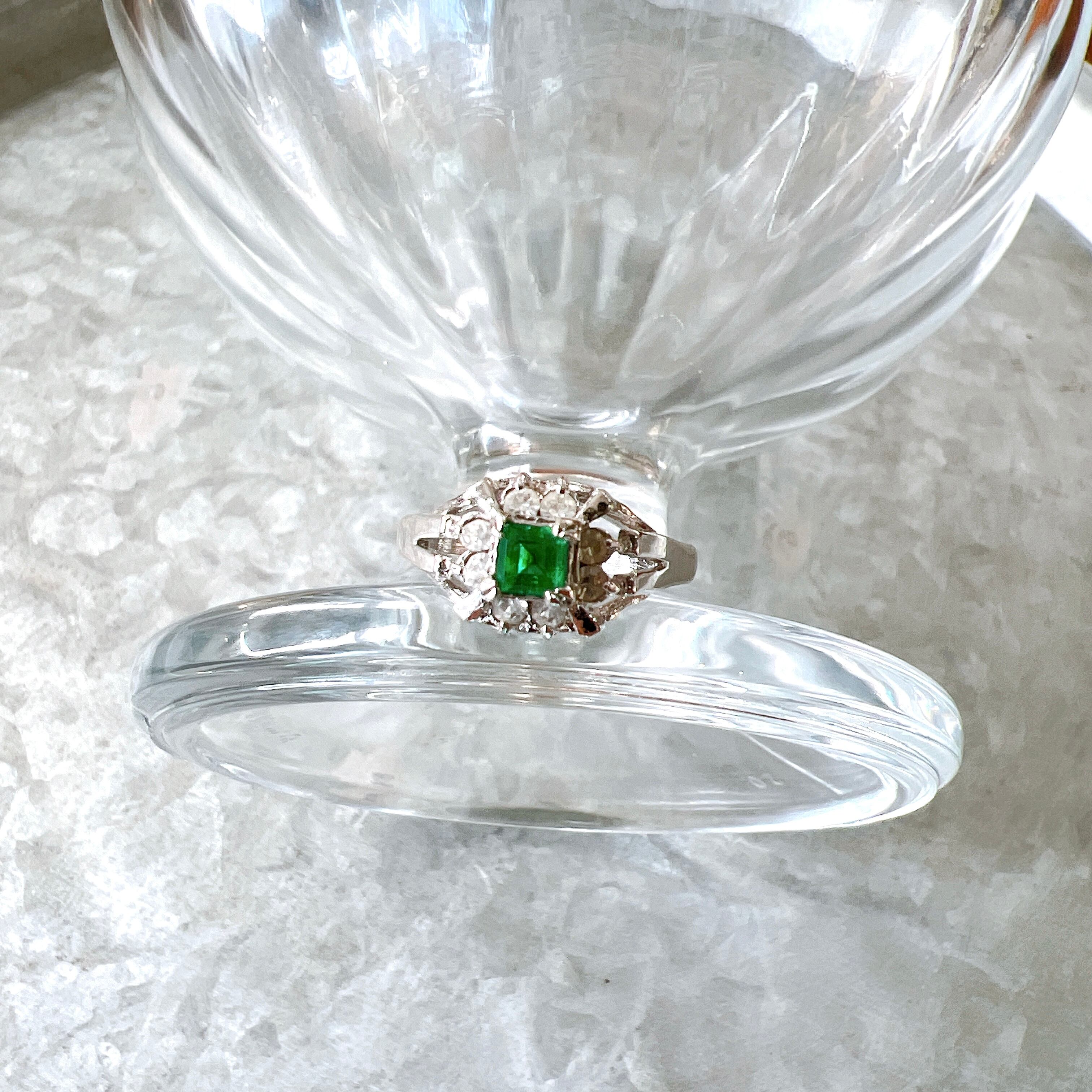 R379-ヴィンテージリング U.S.A. 1960〜70s Silver Tone Green Square Glasses with Rhinestones Ring | eslup_boutique